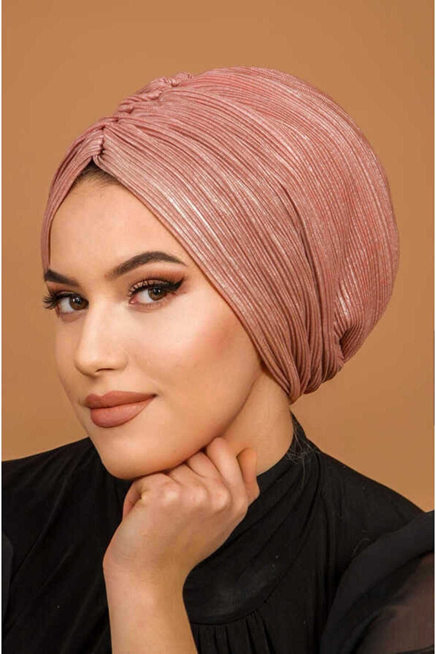 Bakır Çizgi Işıltılı Hazır Atkılı Bone
