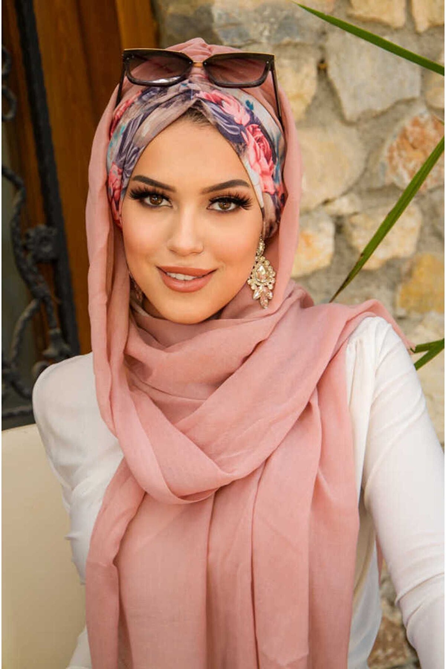 Pudra Turkuaz Çiçek Desen Hazır Şal