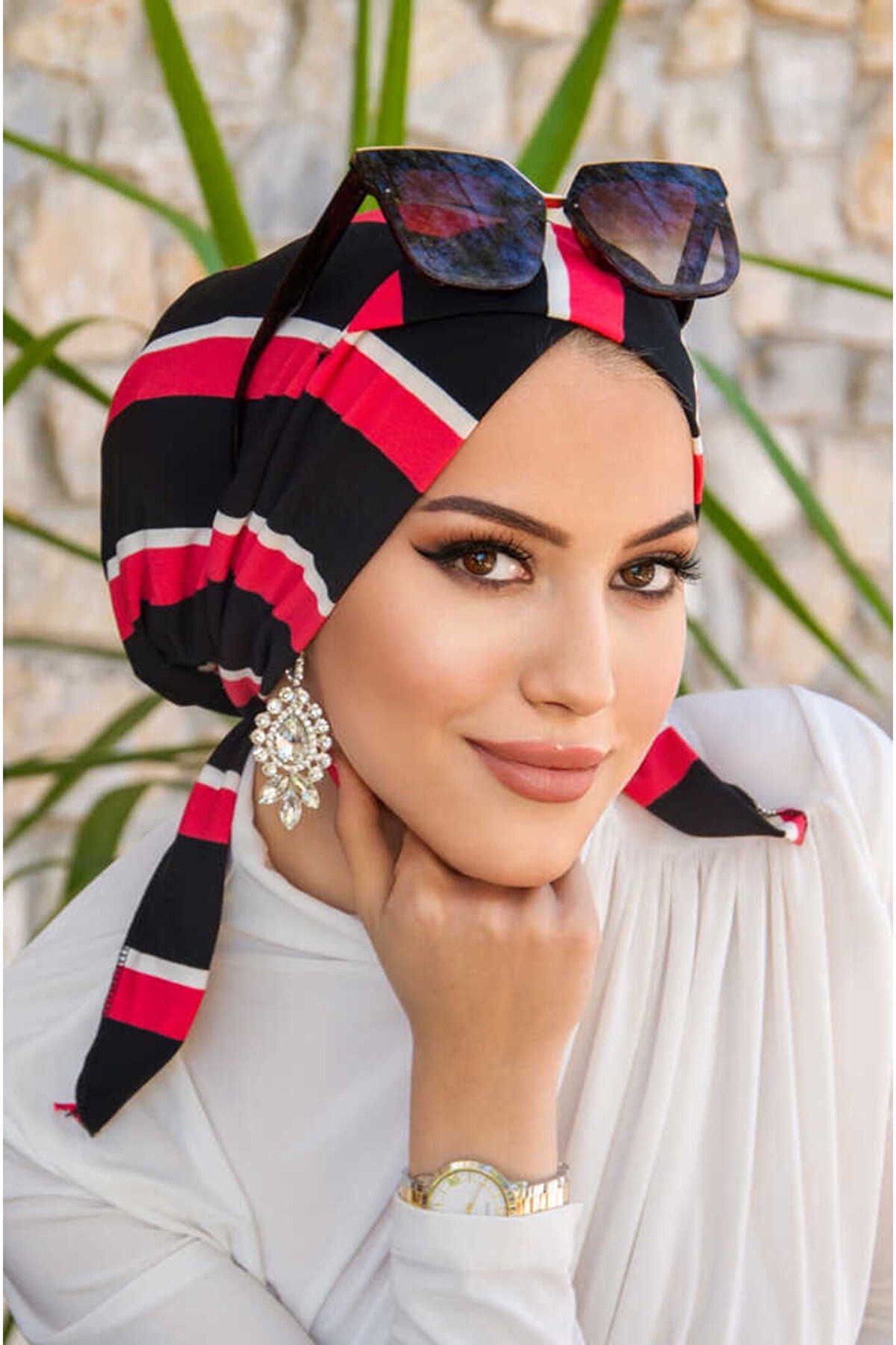Siyah Çizgi Desen Çapraz Deniz - Havuz Bonesi