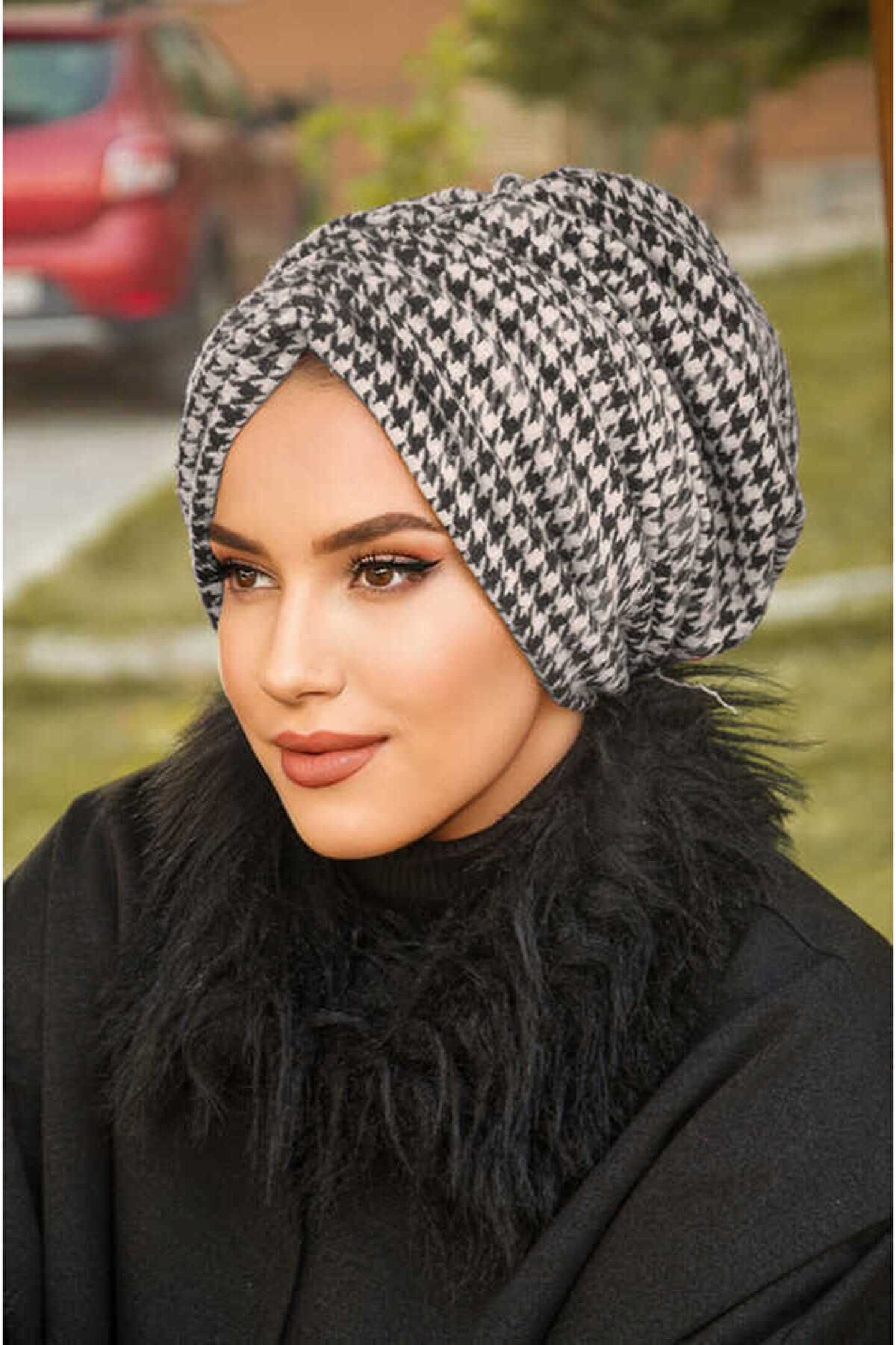 Siyah Kazayağı Kışlık Büzgülü Bone