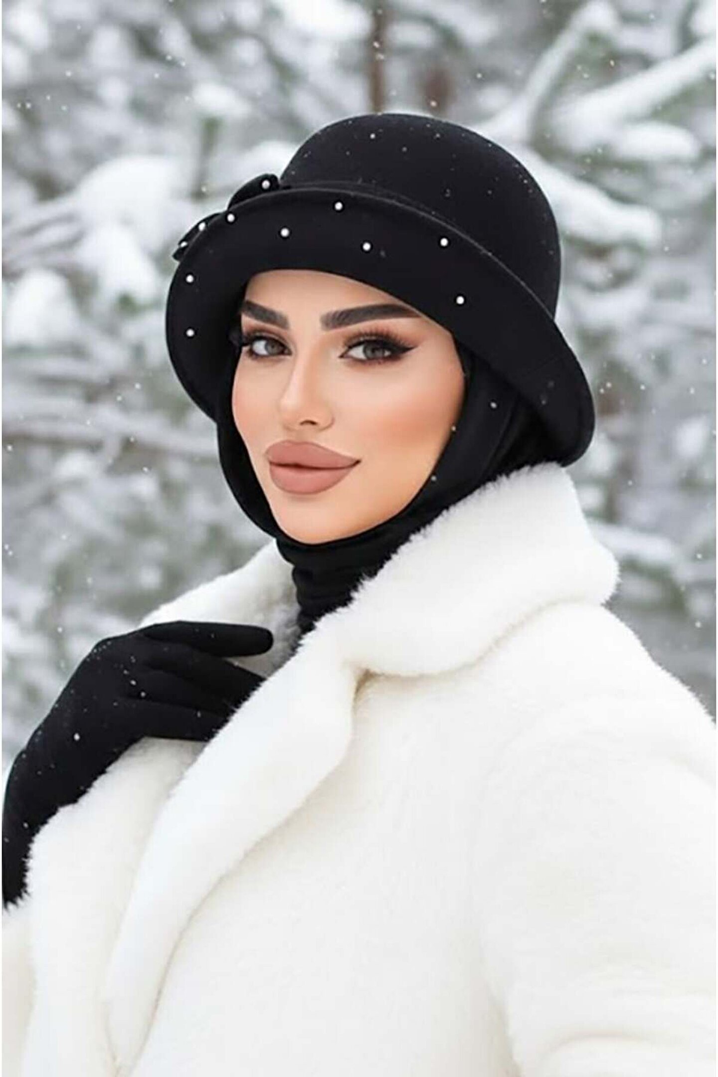Aişe tesettür Siyah Taş Detay Vintage Şapka