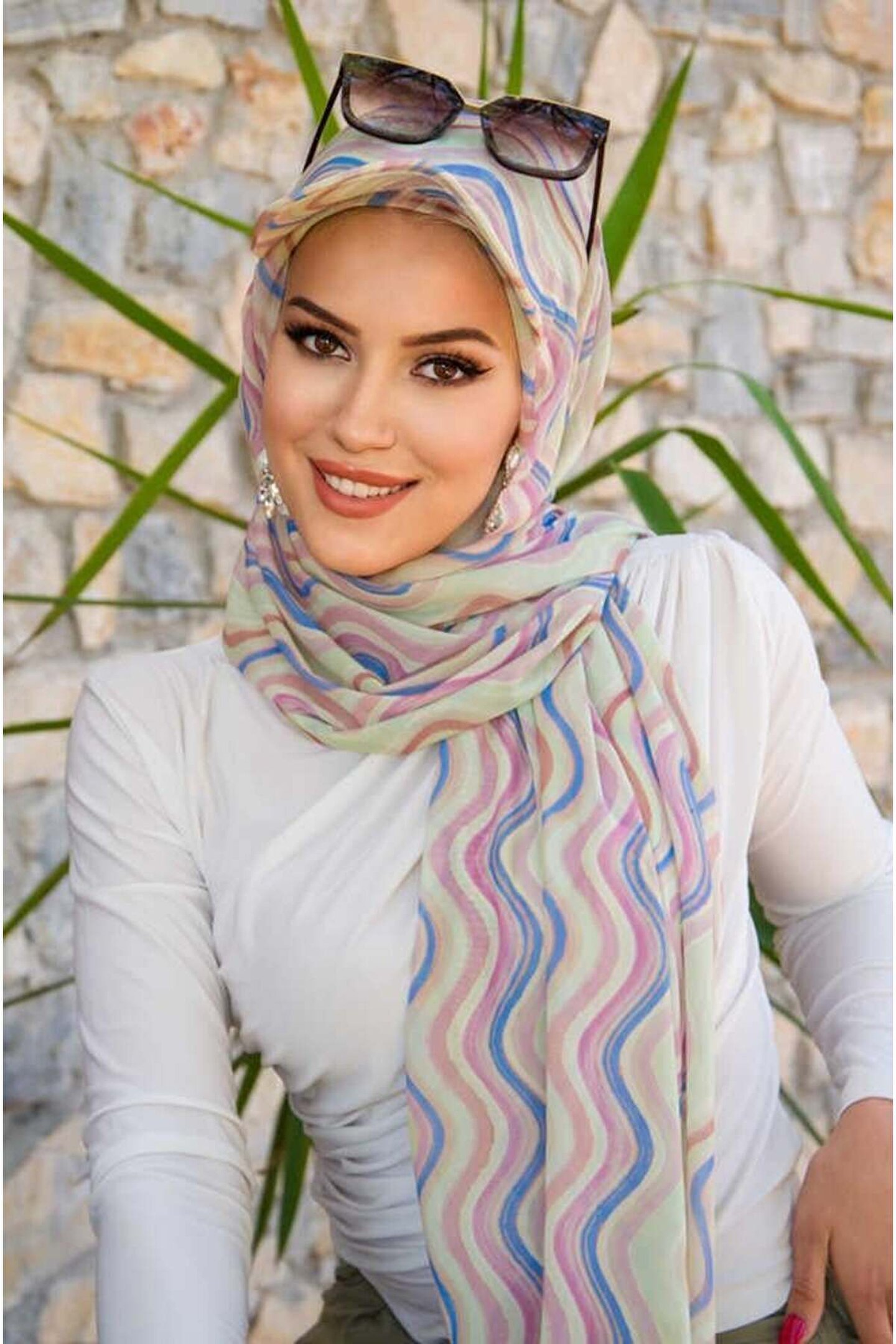 Aişe tesettür Soft Renkler Geometrik Desen Kepli Bandana Şapka Şal
