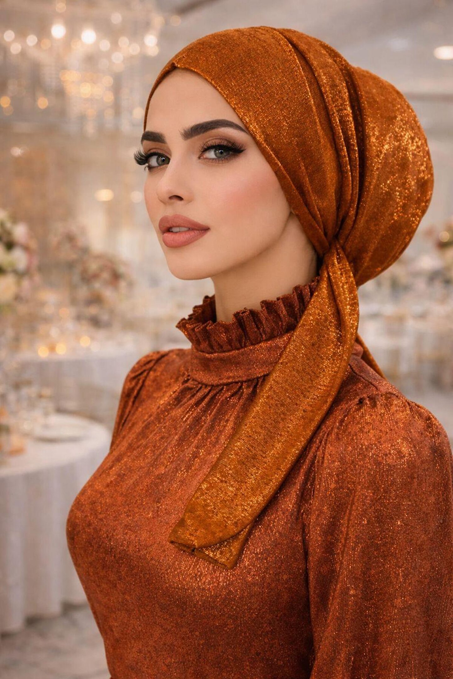 Tasarım: Hazır dikimli, enseden lastikli eşarp bone.