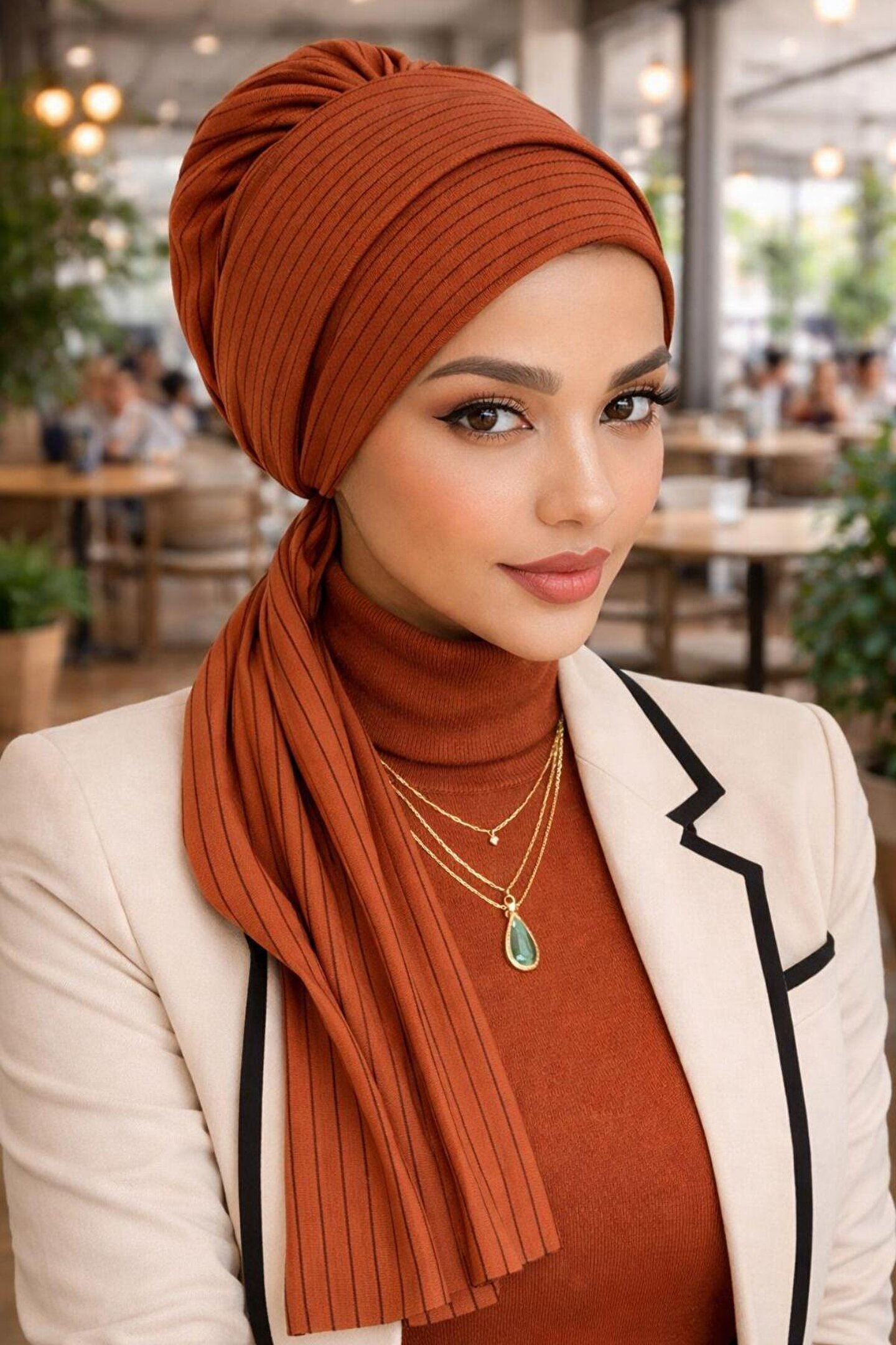 Aişe tesettür Taba Çizgili Atkılı Bone