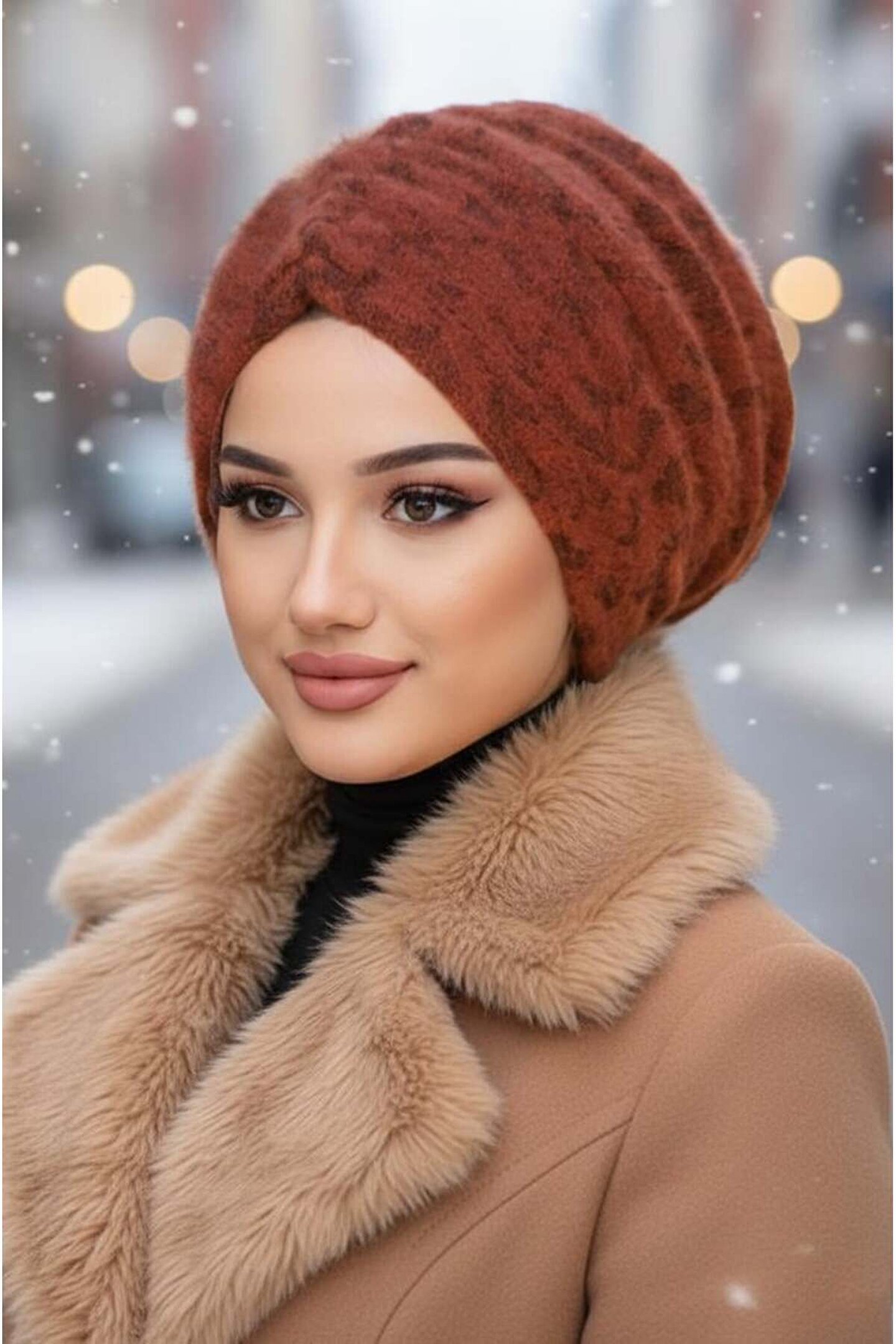 Aişe tesettür Taba Yumoş Kışlık Büzgülü Bone