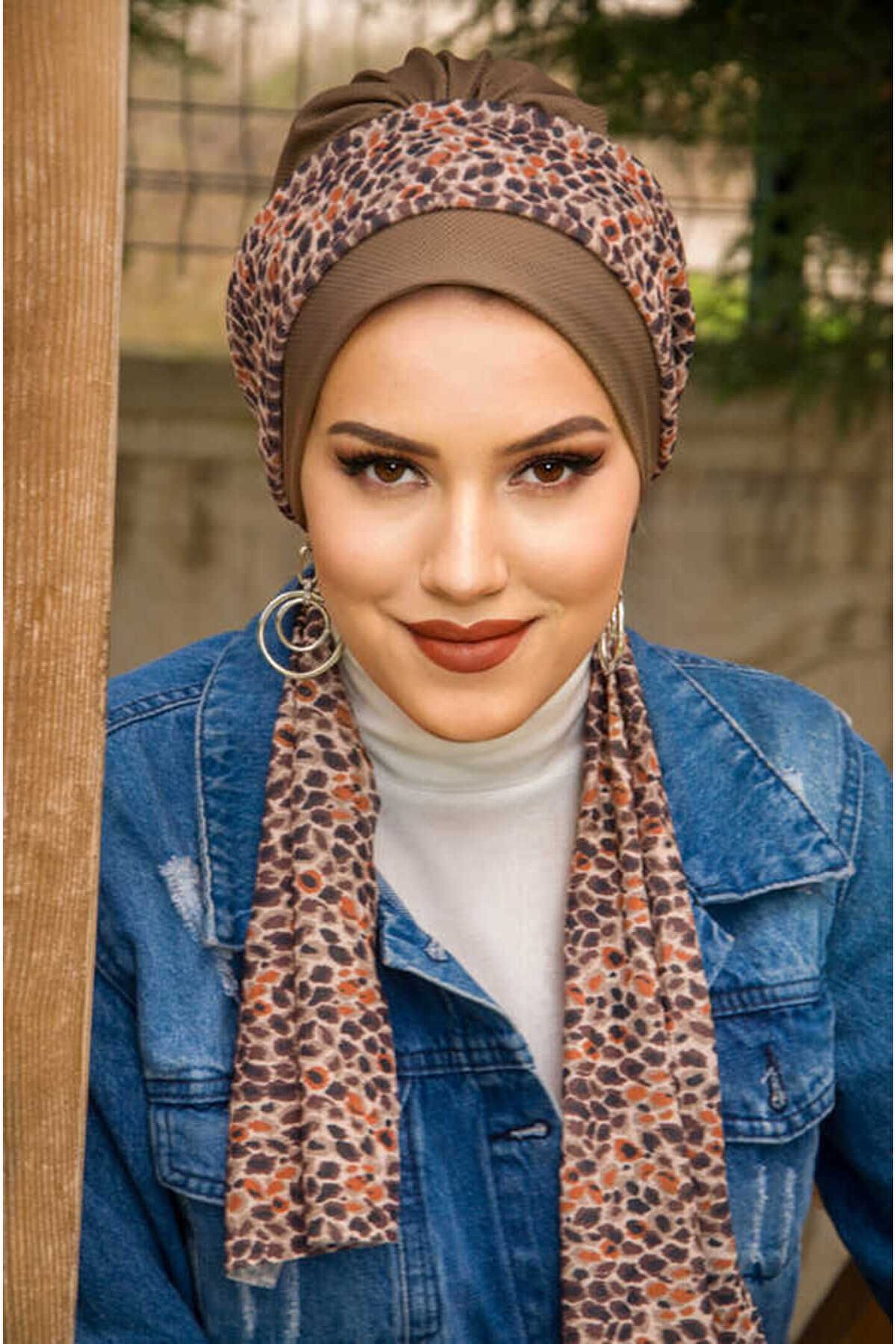 Vizon Leopar Desen Fularlı Bone