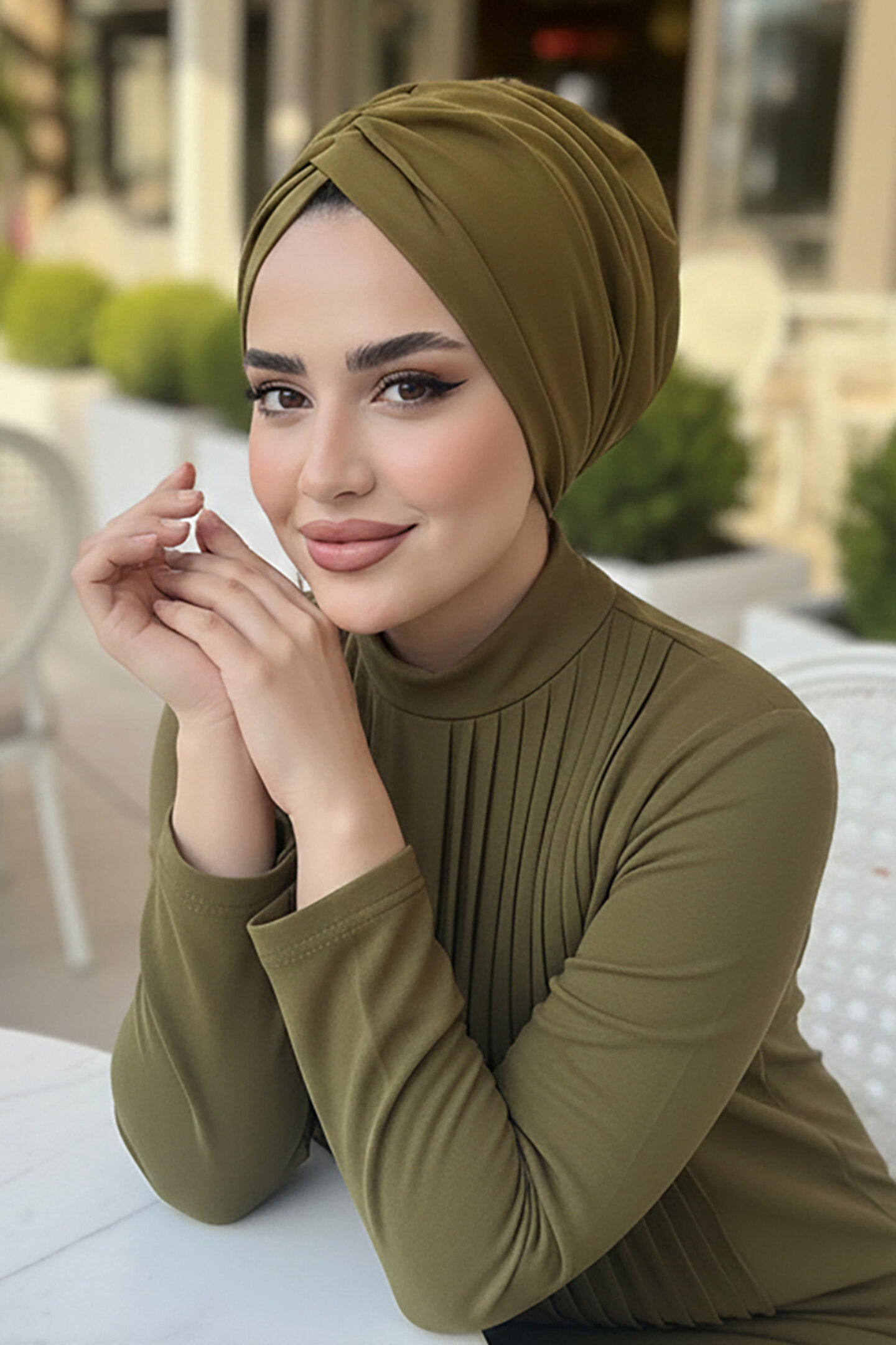 Yüksek kaliteli likralı krep kumaştan üretilen bu model, nefes alan yapısıyla terletme yapmaz. Esnek dokusu sayesinde başınızı sıkmaz ve gün boyu süren bir konfor sağlar. Mevsimlik kumaş özelliğiyle; ilkbaharın serinliğinde, yazın sıcaklarında veya sonbahar kombinlerinde rahatlıkla tercih edilebilir.