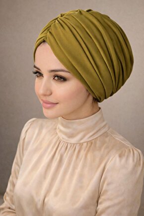 Aişe tesettür Yağ Yeşili Büzgülü Salaş Bone