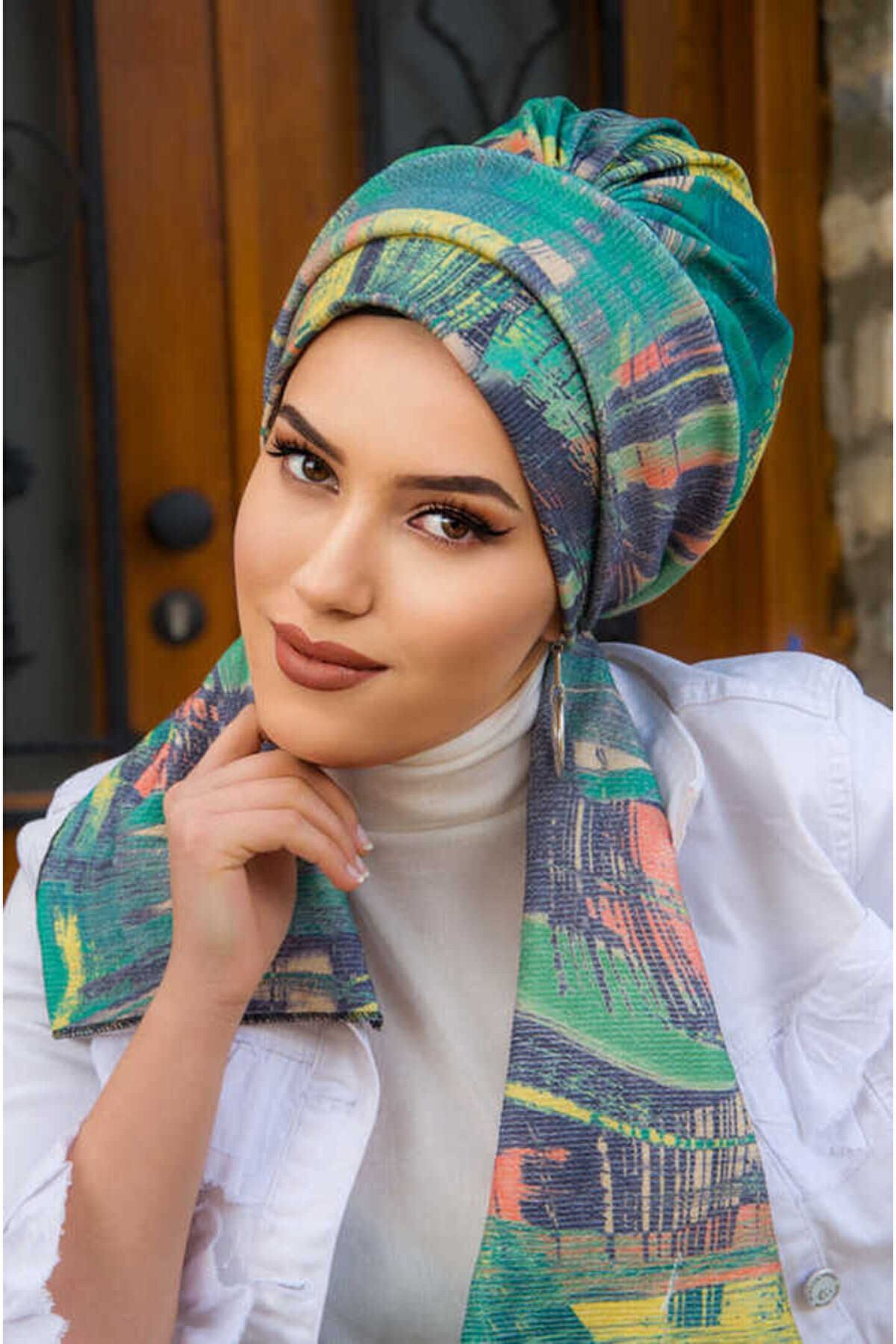 Beyaz Mavi Desenli Büzgülü Salaş Bone