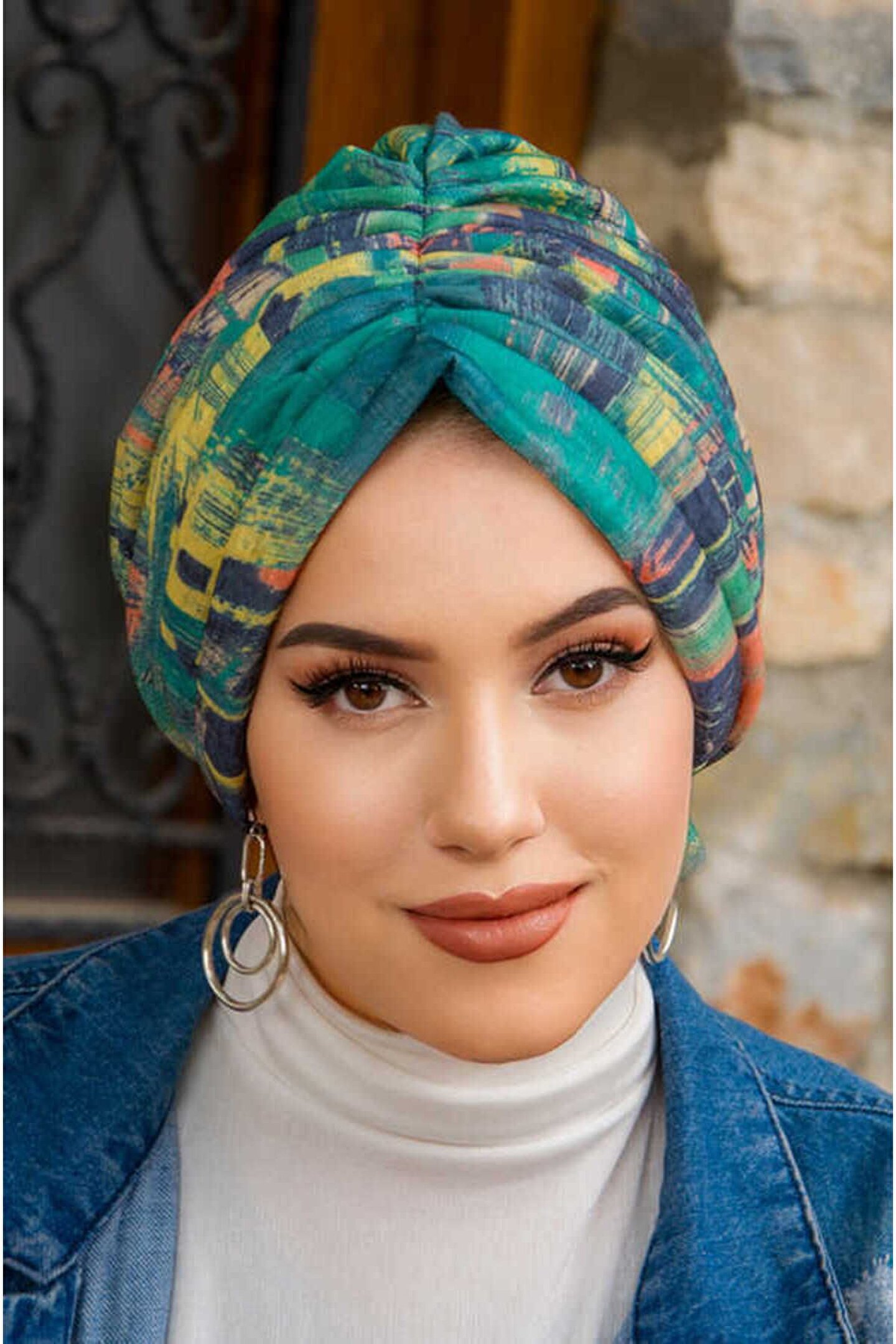 Beyaz Mavi Desenli Büzgülü Salaş Bone