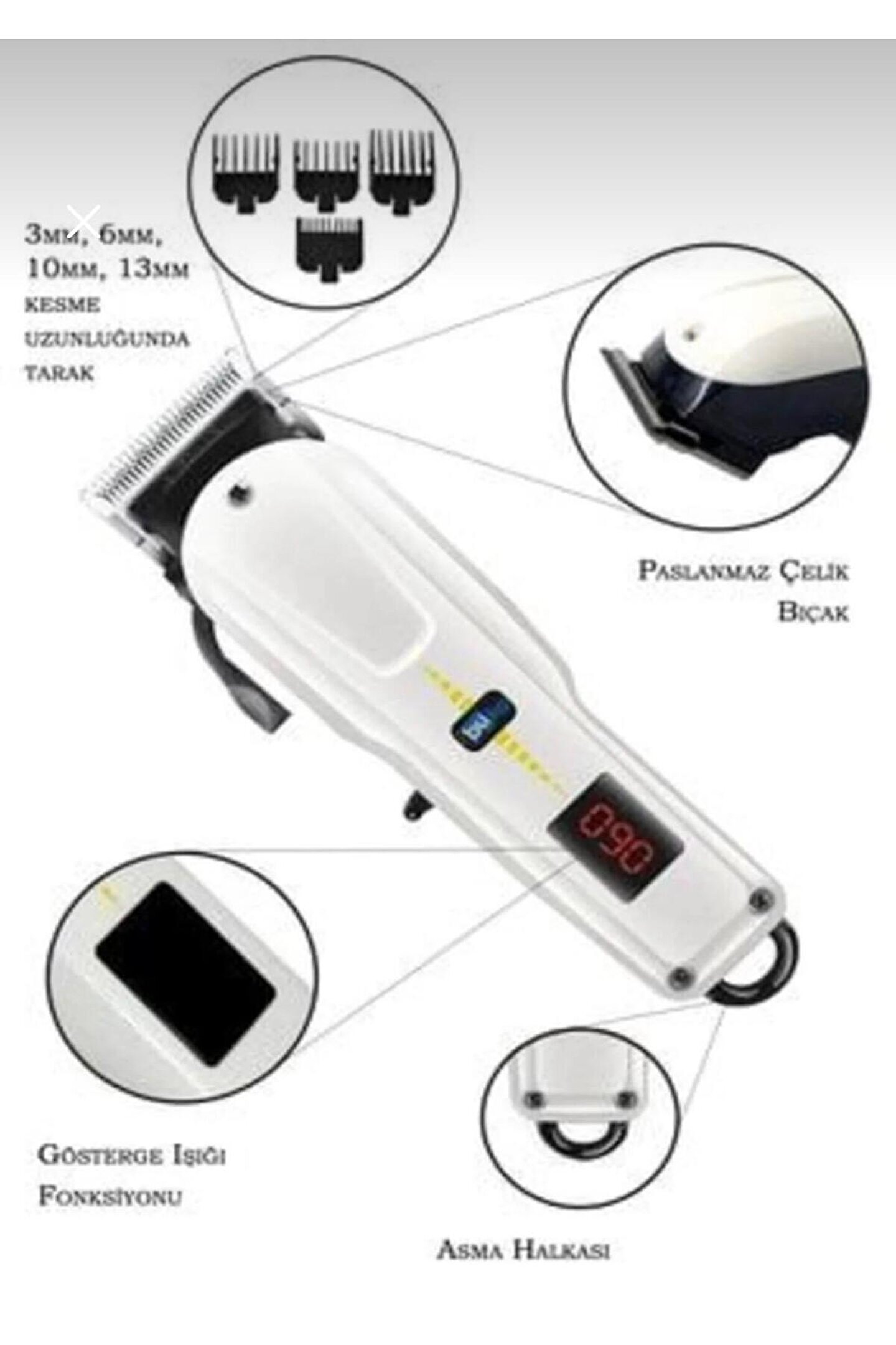 6018/6008 Ultra Güçlü Motorlu Pet Series Şarjlı Kablosuz Kedi Köpek Traş Makinesi Evcil Hayvan Tüy Kesme ; Ürün Özellikleri ; Uzman hassasiyeti için 4 Kesme başlık ; 90+ Dakika çalışma süresi ; Şık ergonomik tasarıma sahip hafif ; Kolay solma ve harmanlama için konik kol ile donatılmıştır ; Paslanmaz çelik krom levha segmenti ; Üstün performansli güçlü motor ; Özel güvenlik güç kaynağı kablosu ; Paslanmaz çelik bıçak ; Ayarlanabilir konik kontrol ; Ayarlanabilir Kesme uzunluğu ; LCD ekran gösterimi ; Pil kapasitesi yüzdesi ; Dahili 220 mAh batarya, ; Şarj süresi: 3 saat ; Çalışma süresi: 3 saat ; Lityum pil ; Ölçüler: ; Makina Ölçüsü(uzunluğu): 19 cm. ; Kesim Genişliği: 45 mm ; Kutu içeriği: ; 3 mm kesim tarağı ; 6 mm kesim uzunluğu tarak ; 10 mm kesme boyu tarak ; 13 mm kesme boyu tarak ; Temizlik fırçası ; Yağ şişesi ; Şarj adaptörü ; Koruyucu kapak ;