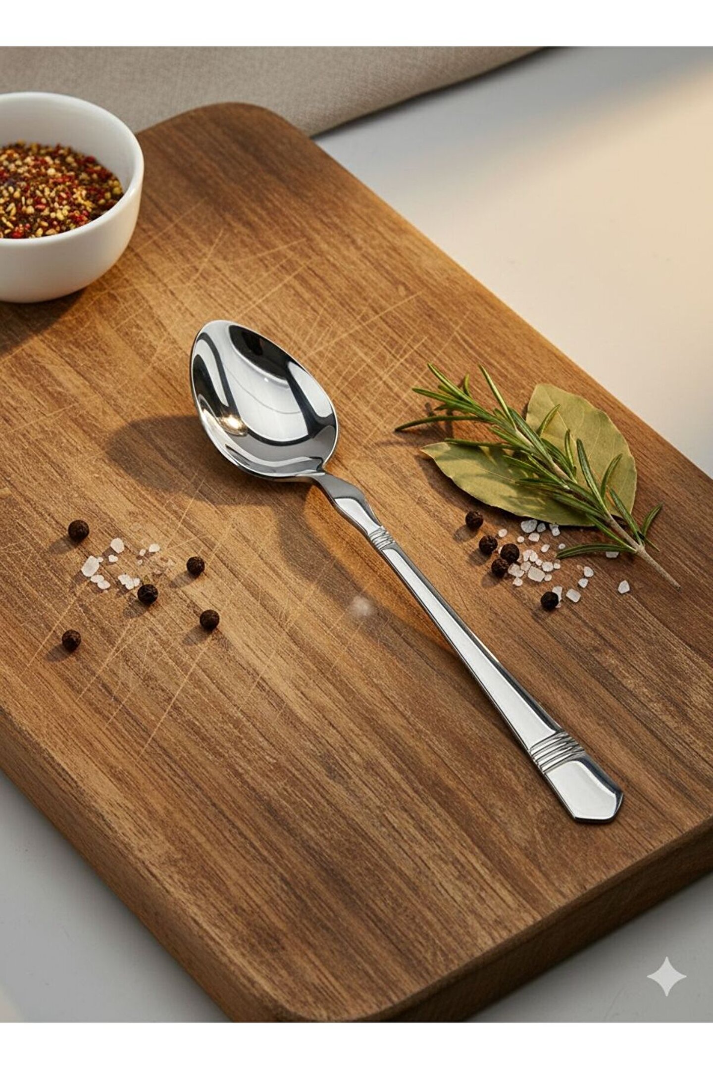 * Malzeme: Yüksek kaliteli paslanmaz çelik (Kararma ve paslanmaya karşı dayanıklı).; * Tasarım: Sap kısımlarında modern 4 çizgili zarif detaylar.; * İçerik: 6 Adet Yemek Kaşığı, 6 Adet Yemek Çatalı, 6 Adet Tatlı Kaşığı, 6 Adet Tatlı Çatalı, 6 Adet Çay Kaşığı.; * Kullanım: Bulaşık makinesinde yıkanabilir, günlük ve özel davetler için uygundur.; * Form: Ergonomik sap yapısı ile konforlu tutuş sağlar.; * 18/10/304