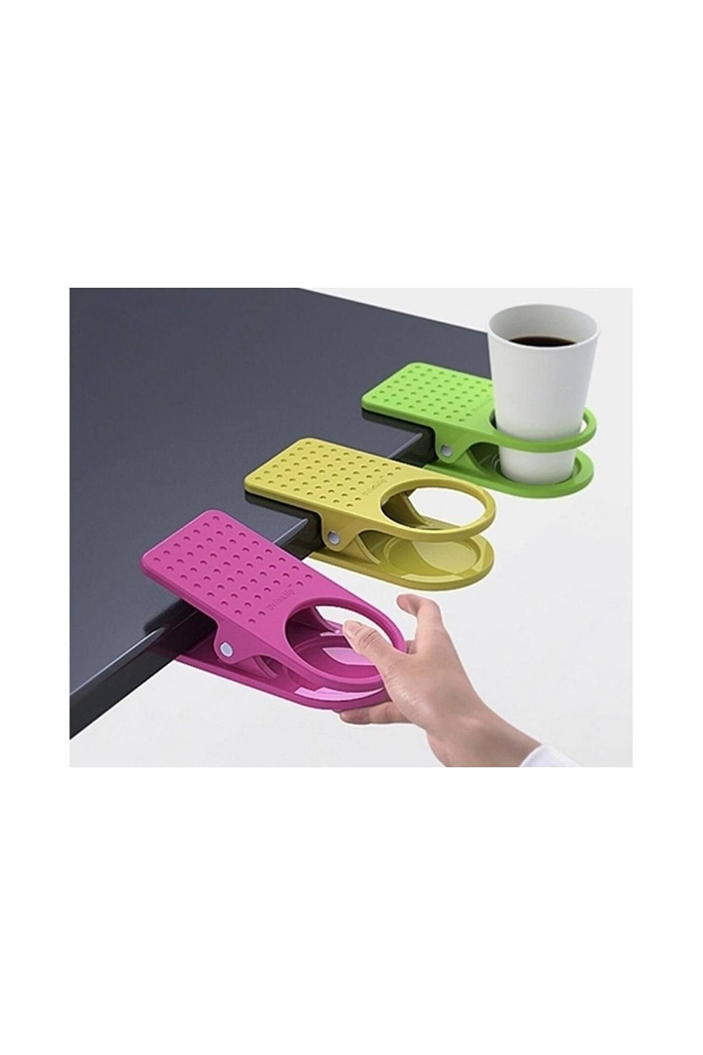 Masana Tuttur ve Rahat Rahat İç ! Masanızda çalışırken, içeçeğiniz her an dökülecek korkusuyla mı içmeye çalışıyorsunuz ? Eliniz az bir şey dokundu ve tüm evraklarınız laptopunuz, yani kısacası tüm çalışmanız mahvoldu mu ? İşte Drink clip cup holder masa bardak tutucu bu gibi bir çok durumda sizin rahat rahat içeçeğinizi yudumlamanızı ve ellerinizi rahat rahat kullanabilmenizi sağlamak amaçlı tasarlanmış harika bir üründür. ; Gönül rahatlığı ile çalışırken içeçeğinizi ona emanet edin. ; Kullanımı çok kolaydır. ; Masa bardak tutucu bir mandal gibi hemen hemen her masaya tutturabiliyorsunuz sonra 6.5 cm alt ölçüleri olan her bardağınızı rahatlıkla içine bırakın. ; İşte bu kadar kolay ! Ürün Özellikleri Sağlam plastikten üretilmiştir. ; Mandal ile tutturmalı sistem 6.5 cm dib ölçüsü olan bardaklar ile uyumludur. ; Kullanışlı,pratik ve yıkanabilirdir. ; Not : Stok durumuna göre karışık renklerde gönderimi yapılır.;