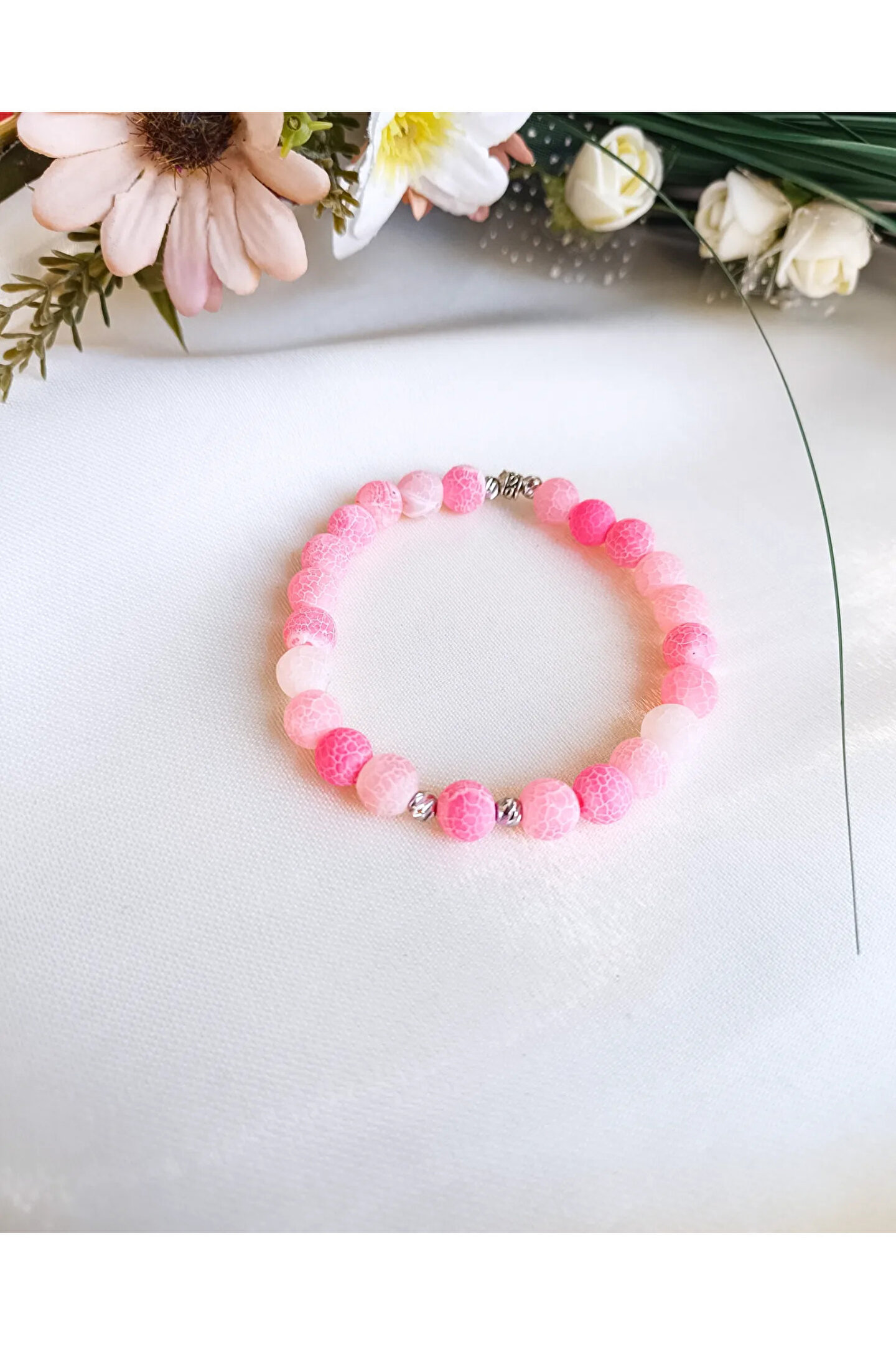 Doğal akik taşı kullanılarak üretilmiş, şıklığı ve zarafeti bir arada sunan bileklik; Her bir bileklik, benzersiz desenleri ve renk tonlarıyla dikkat çeker, kişisel tarzınıza özgün bir dokunuş katar; Doğal taş materyali sayesinde, her kullanımda farklı bir deneyim yaşatır ve doğanın güzelliklerini bileğinizde taşımanızı sağlar; Akik taşı, enerjiyi dengelemeye yardımcı olurken aynı zamanda stresi azaltıcı etkisiyle de bilinir; bu sayede günlük yaşamınızda pozitif bir etki yaratır;