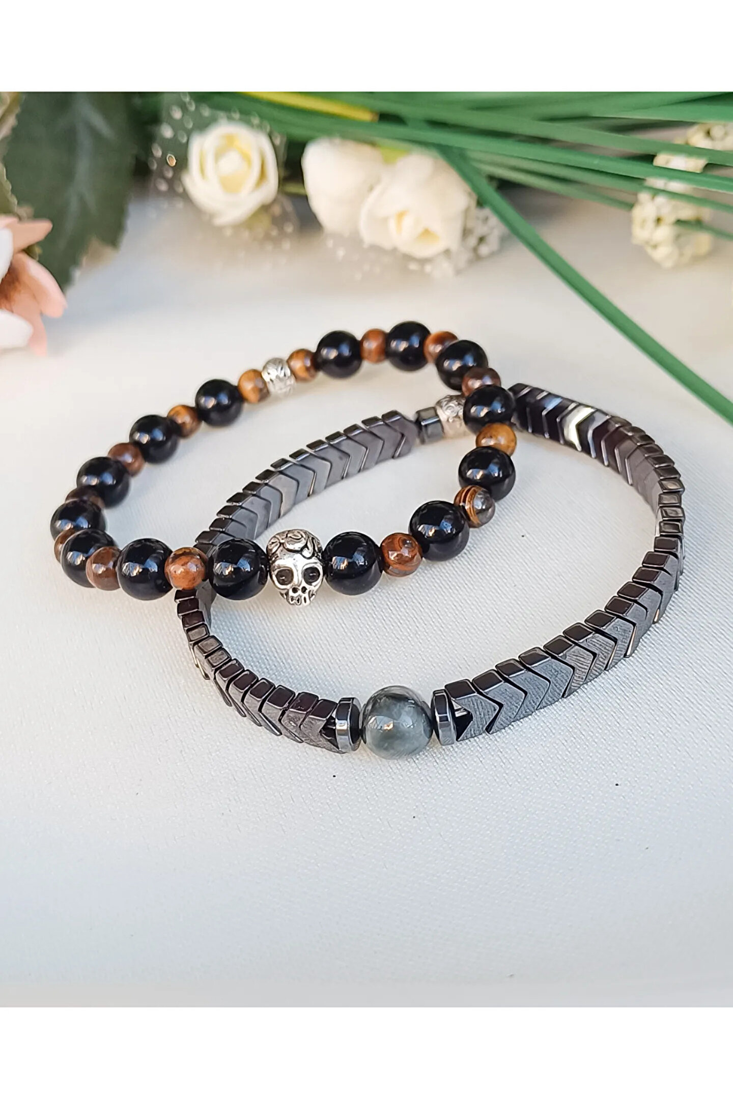 Doğal taş bileklik seti, hem şıklığı hem de doğallığı bir arada sunar; Kaplan gözü ve hematit taşı gibi iki farklı doğal taş kullanılarak tasarlanmıştır, her bileklik benzersiz bir görünüm kazandırır; Doğal taş materyali sayesinde bilekliklerin her biri eşsiz desen ve renk tonlarına sahiptir, bu da kişisel tarzınıza özgün bir dokunuş katar; Bu bileklik seti, günlük kullanım için idealdir ve her türlü kıyafetle kolayca uyum sağlar;
