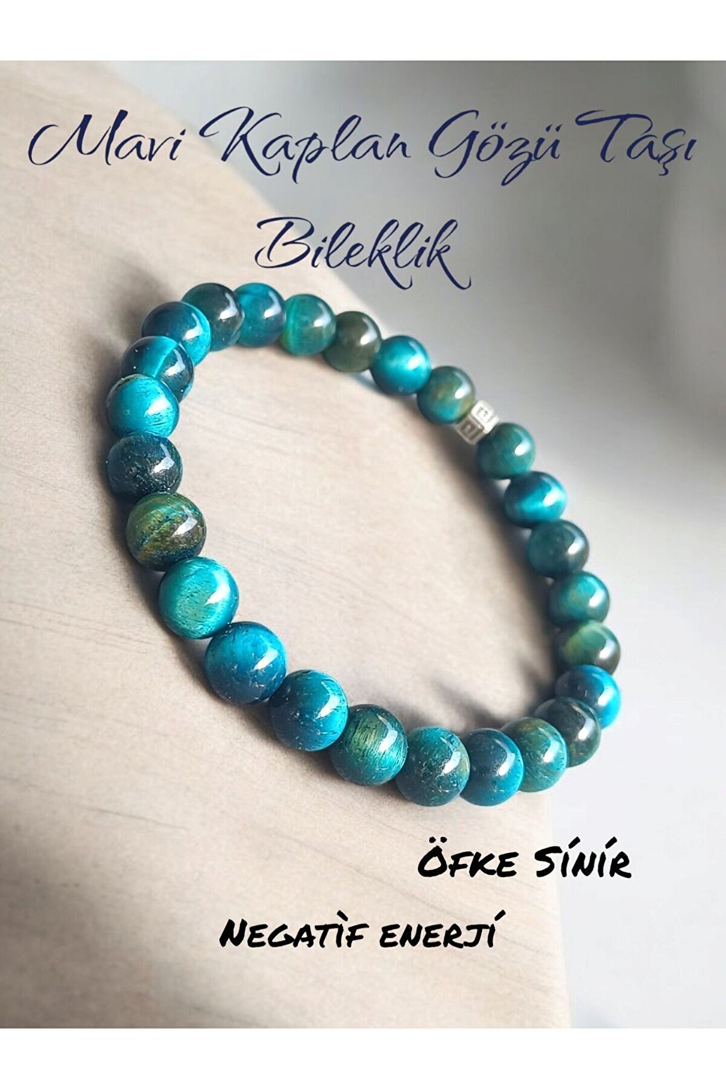Doğal taş kaplangözü taşı, benzersiz ve otantik bir görünüm sunar; Bileklikteki doğal taş materyal, her parça için eşsiz bir dokunuş sağlar; Doğal taş kullanımı, bilekliğin hem şık hem de dayanıklı olmasını garantiler; Kaplangözü taşı, bilekliğe zarif bir mavi tonu katarak dikkat çekici bir stil oluşturur;