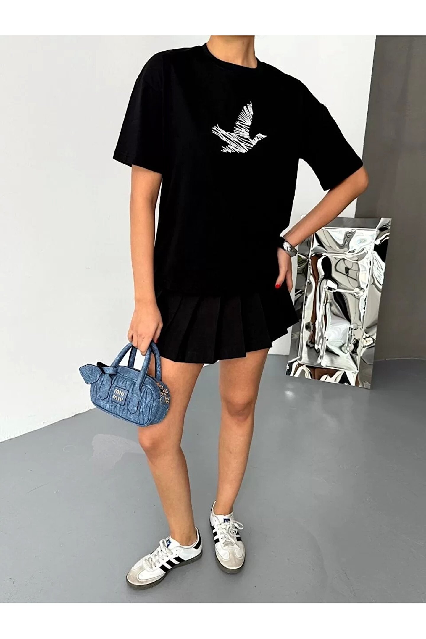 ALPACO Kısa Kol Baskılı T-shirt - Siyah