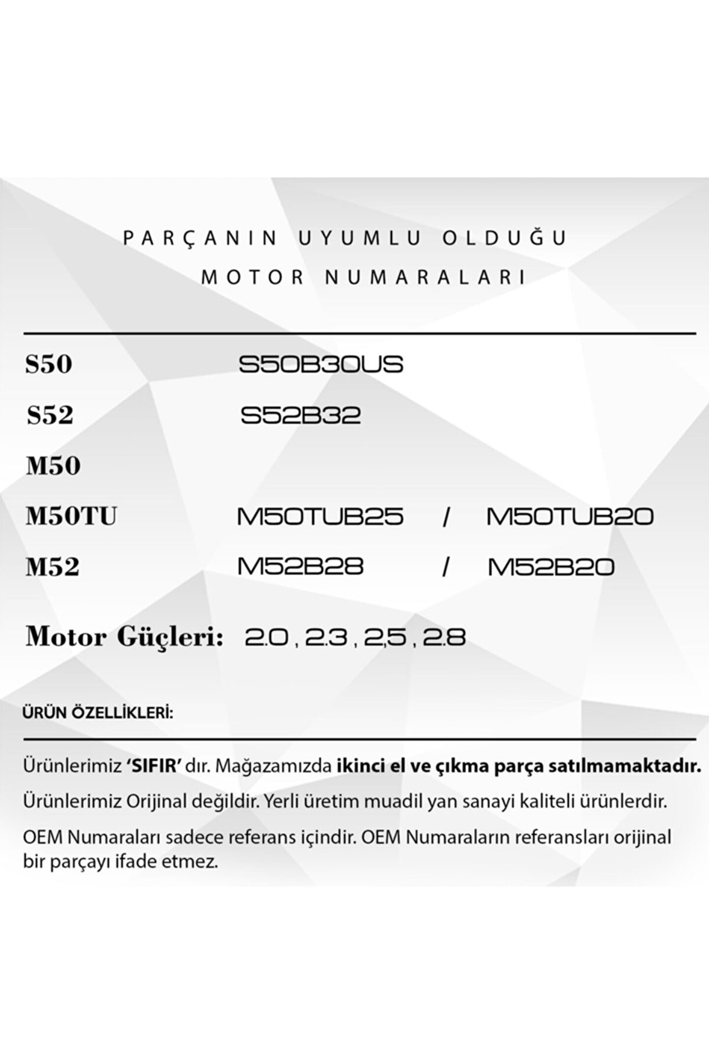 BMW E34. E36. E38. E39. Z3 için Vanos Tamir Takımı.; Bu Vanos Tamir Takımı, aracınızın performansını artırmak ve motor verimliliğini maksimize etmek için tasarlanmıştır.; Araç motorunuzun en iyi şekilde çalışmasını sağlamak için gereken tüm bileşenleri içerir.; Takım, dayanıklı ve uzun ömürlüdür, böylece aracınızın motorunun ömrünü uzatır.; Vanos Tamir Takımı, motorunuzun en yüksek hızlarda bile pürüzsüz ve verimli çalışmasını sağlar.; Kolay kurulum özelliği sayesinde, aracınızı profesyonel bir servise götürmenize gerek kalmaz.; Bu ürün, aracınızın ömrünü uzatmak ve performansını artırmak için mükemmel bir yatırımdır.; Aracınızın motoru için bu yüksek kaliteli tamir takımıyla, daha sessiz, daha düzgün ve daha güçlü bir sürüş deneyimi yaşayabilirsiniz.; Ürün Kodu: MTR2289