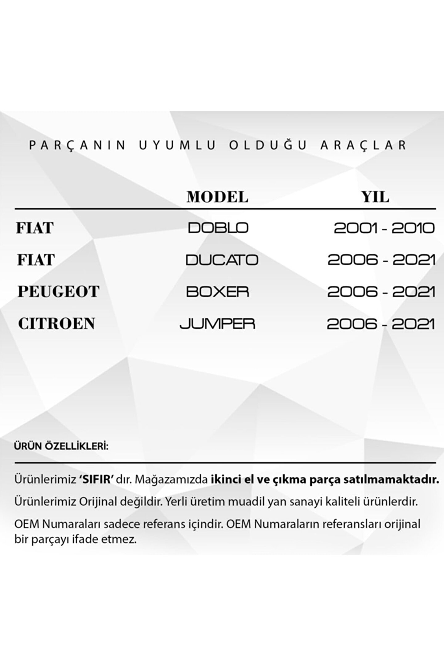 Fiat Doblo.; Citroen.; Peugeot Boxer için Arka Tampon Reflektörü.; Araba Arka Tampon Reflektörü, LGH2230 kodu ile sürüş güvenliğinizi artıran bir üründür.; Aracınızın görünürlüğünü artıran bu reflektör, geceleri ve kötü hava koşullarında daha güvenli bir sürüş deneyimi sağlar.; Dayanıklı ve uzun ömürlüdür, bu nedenle sık sık değiştirme veya onarım ihtiyacını ortadan kaldırır.; Kolay montajı sayesinde, herhangi bir teknik bilgi gerektirmez ve kısa sürede aracınıza takabilirsiniz.; Yüksek yoğunluklu ışık yansıtma özelliği ile diğer sürücülerin sizin farkına varmasını sağlar.; Herhangi bir araç modeline kolaylıkla uyum sağlar.; LGH2230 kodlu Arka Tampon Reflektörü, güvenliğinizi ön planda tutanların tercihidir.