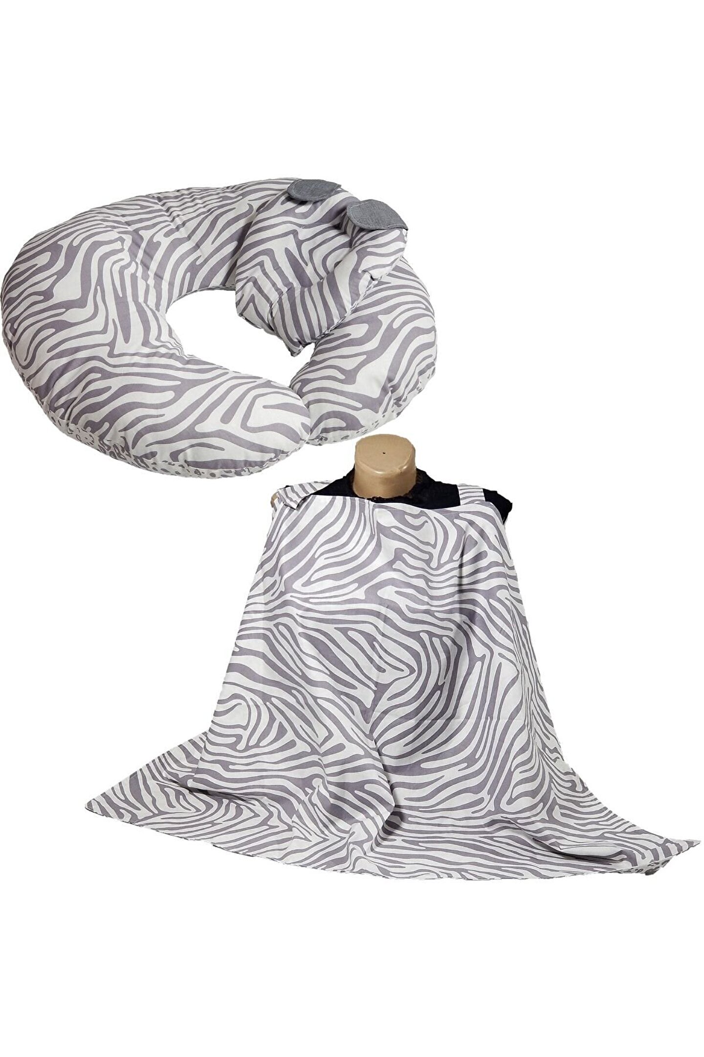annebebektasarım Emzirme Minderi, Emzirme Örtüsü, Düz Kafa Yastığı, Gri Zebra