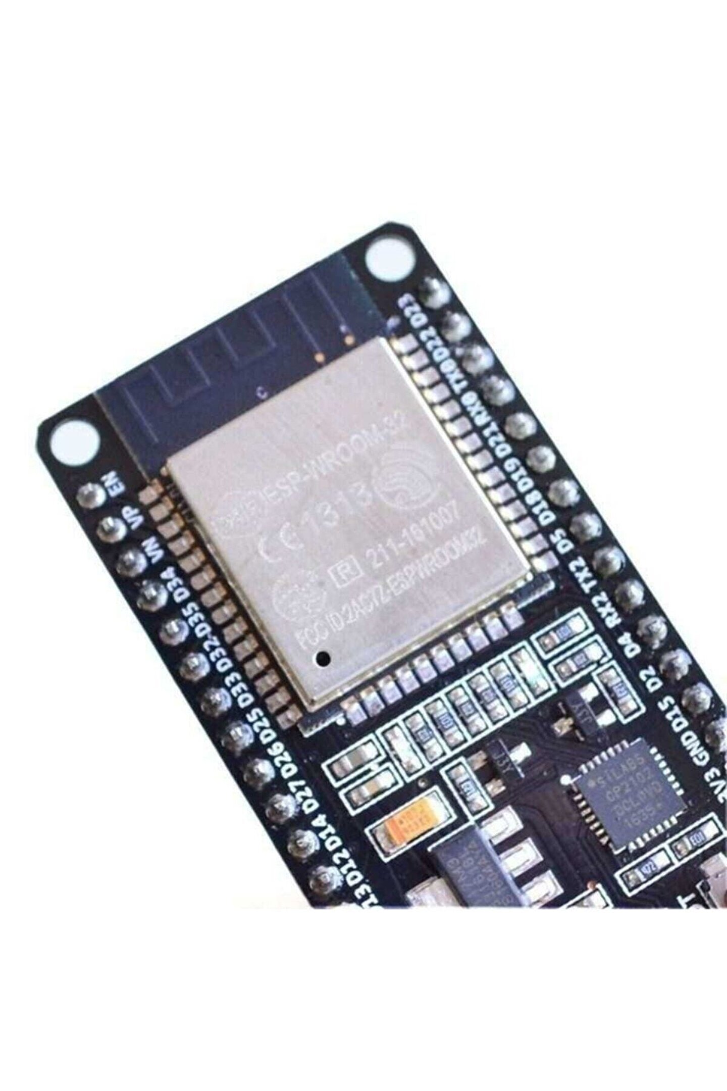 ESP32 ESP-32S WiFi + Bluetooth Dual-Mode Geliştirme Kartı 30 Pin ESP32-WROOM-32 modülünü kullanan bu kartı tıpkı bir Arduino gibi programlamanız mümkündür. ; Çift çekirdekli 160MHz işlemcisi sayesinde yüksek işlem gücünün yanı sıra dahili WiFi ve Bluetooth bağlantılarını da desteklemektedir. ; Kart, ESP32 modülünü breadboard ile uyumlu bir kullanmanıza ve üzerinde yer alan USB-UART dönüştürücü (CP2102) ile kolay programlamanıza olanak tanır. ; ÖZELLİKLERİ Mikro USB: güç kaynağı ve güncelleme yazılımı, Çalışma voltajı: 2.8 ~ 3.6V, Çalışma akımı: 120ma, Frekans: 2400M-2483,5M Hz, Anten Tipi: Dahili PCB anteni mevcuttur, Kablosuz Ağ Modu: istasyon / softAP / SoftAP + istasyonu, Kablosuz kriterleri: 802.11 b / g / n / e / i. ; Bluetooth 4.2 (BR / EDR / BLE) Dijital arayüz: UART / SPI / I2C / I2S / IR / CAN / GPIO / PWM.;