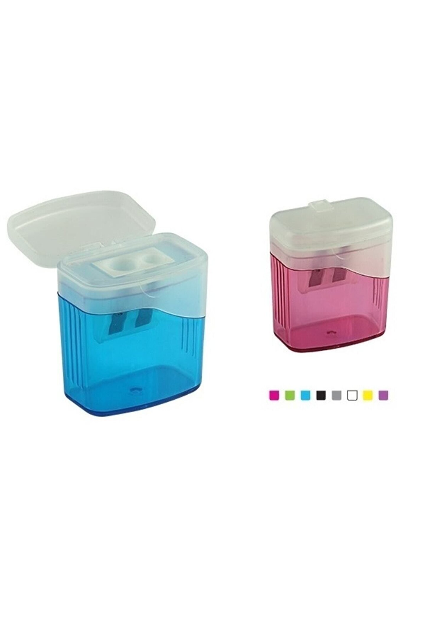 Ark Hazneli Kalemtıraş Çiftli Kapakl Çift delikli kapaklı kalemtıraş *1 adet fiyatıdır .; *Standart kurşun kalem ve boya kalemler için ideal *Bu ürün firmamıza karışık renklerde gelmektedir.; Sipariş verildiğinde stokta olan renklerden gönderilecektir