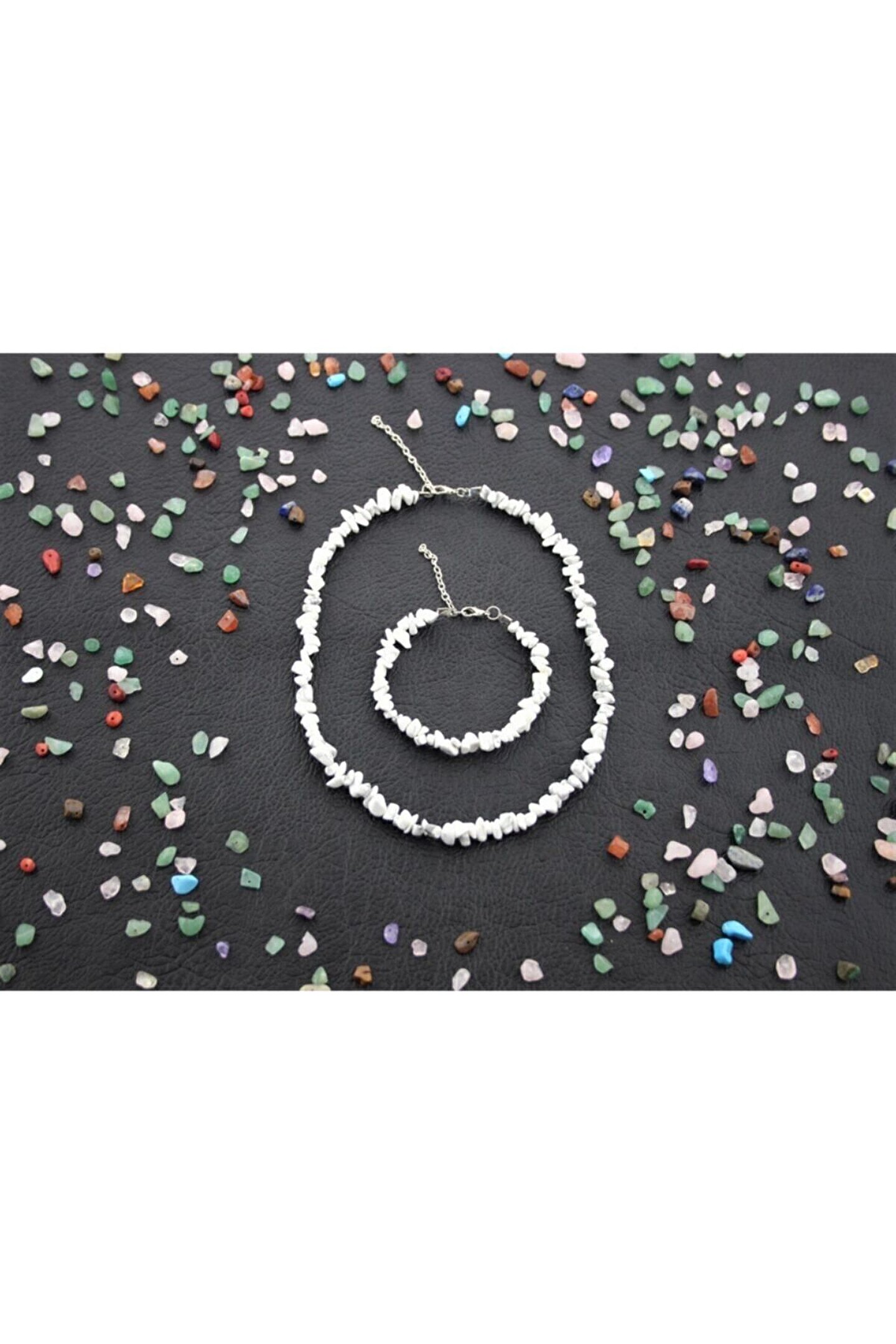 Havlit Taşının Özellikleri Nelerdir? Akıl huzurunu rahatlatma özelliği olduğundan meditasyon sırasında kullanılması tavsiye edilir. ; Güçlü bir sakinleştirici etkisi olduğundan, stres ve endişeyi azaltmada çok etkilidir. Öfke, saldırganlık ve mantıksızlığı ortadan kaldırır. ; Her alanda huzur, mutluluk ve rahatlama verir. Ilımlı ve uyumlu kişilik sergilenir. ; Yaratıcılığı ve el becerilerini ortaya çıkaran taş, ilham vermek ve motivasyon sağlamak için mükemmel bir taştır. ; Zenginlik, bolluk, şans ve ferahlık gibi parasal konularda etkili bir taştır. ; Aşk ve sevgi gibi duygusal hislerde korkularınızı aşmanıza yardımcı olur. ; Kolye ve Bilekliğimiz Orjinal Doğaltaştır. ; Ürünümüz El işçiliği İle Hazırlanmaktadır. ; Kolye Boyu 40 cm 5 cm Ayarlanabilir Zincir. ; Bileklik Boyu 17 cm Ayarlanabilir Zincir. ;