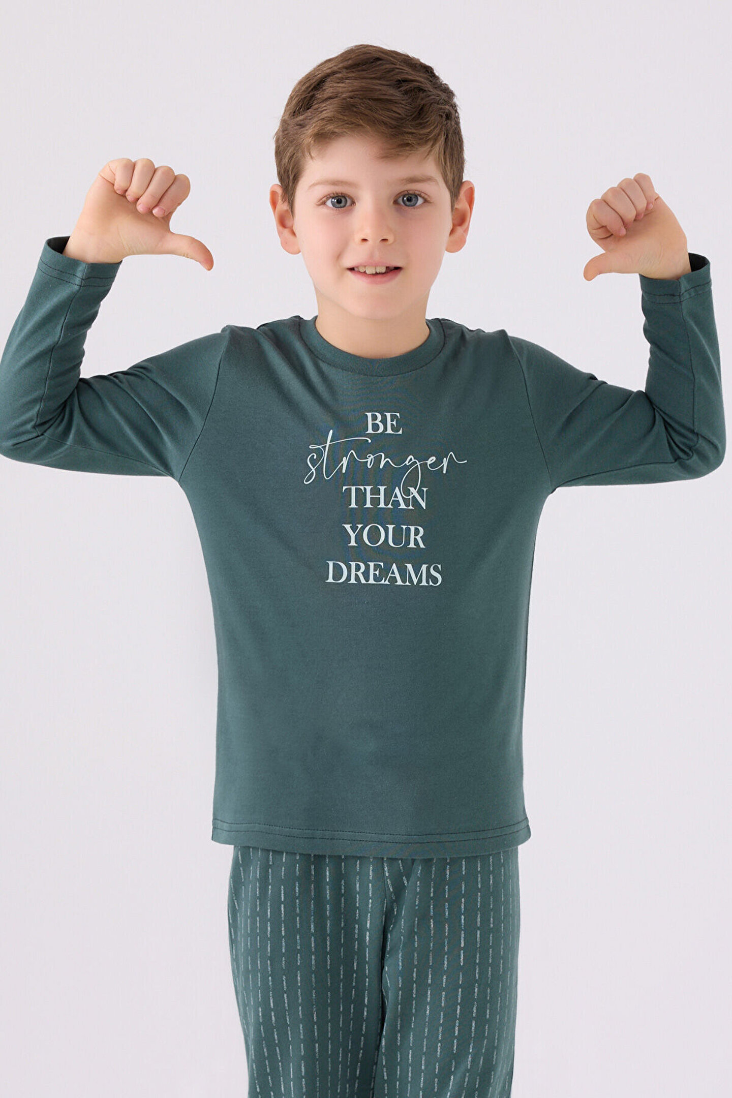 - Renkli ve canlı yeşil tonlarıyla dikkat çeken bu pijama takımı, çocukların enerjisini yansıtır.; - Örme kumaş yapısı sayesinde yumuşak dokunuşuyla konforlu bir uyku deneyimi sunar.; - Baskılı tasarımı ile şık ve modern bir görünüm kazandırırken, kış ayları için idealdir.; - İki parçadan oluşan set; hem gündüz hem de gece kullanımına uygundur, böylece çocuklar her an rahat ederler.; - Regular kalıp ile vücuda tam oturan ancak hareket özgürlüğünü kısıtlamayan bir yapıya sahiptir.; - 30/1 süprem dokuma tipi, dayanıklılığı artırarak uzun süreli kullanım imkanı sağlar.; - Uzun paça boyu soğuktan korurken, bisiklet yakası rahat bir giyim deneyimi sunar.; - Lisanslı ürün olmasıyla kalite standartlarına uygunluğu garanti altına alırken, %100 pamuk materyali cilt dostudur.; - Yıkama talimatlarına uyulduğunda formunu koruyacak şekilde maksimum 30°C'de yıkanabilir.; - Sade ve düz deseniyle zamansız bir stil oluştururken, basic koleksiyonun sadeliğini benimser.; - Uzun kol boyu mevsimsel geçişlerde bile koruma sağlarken, normal bel kesimi konforlu bir oturuşa olanak tanır.; - Dar paça tasarımının yanında uzun siluetiyle modern bir görünüm sergiler.; - Teknik detayların bulunmaması günlük kullanım için pratik çözümler sunarken, paket içeriğinin 2'li oluşu ekonomiktir.