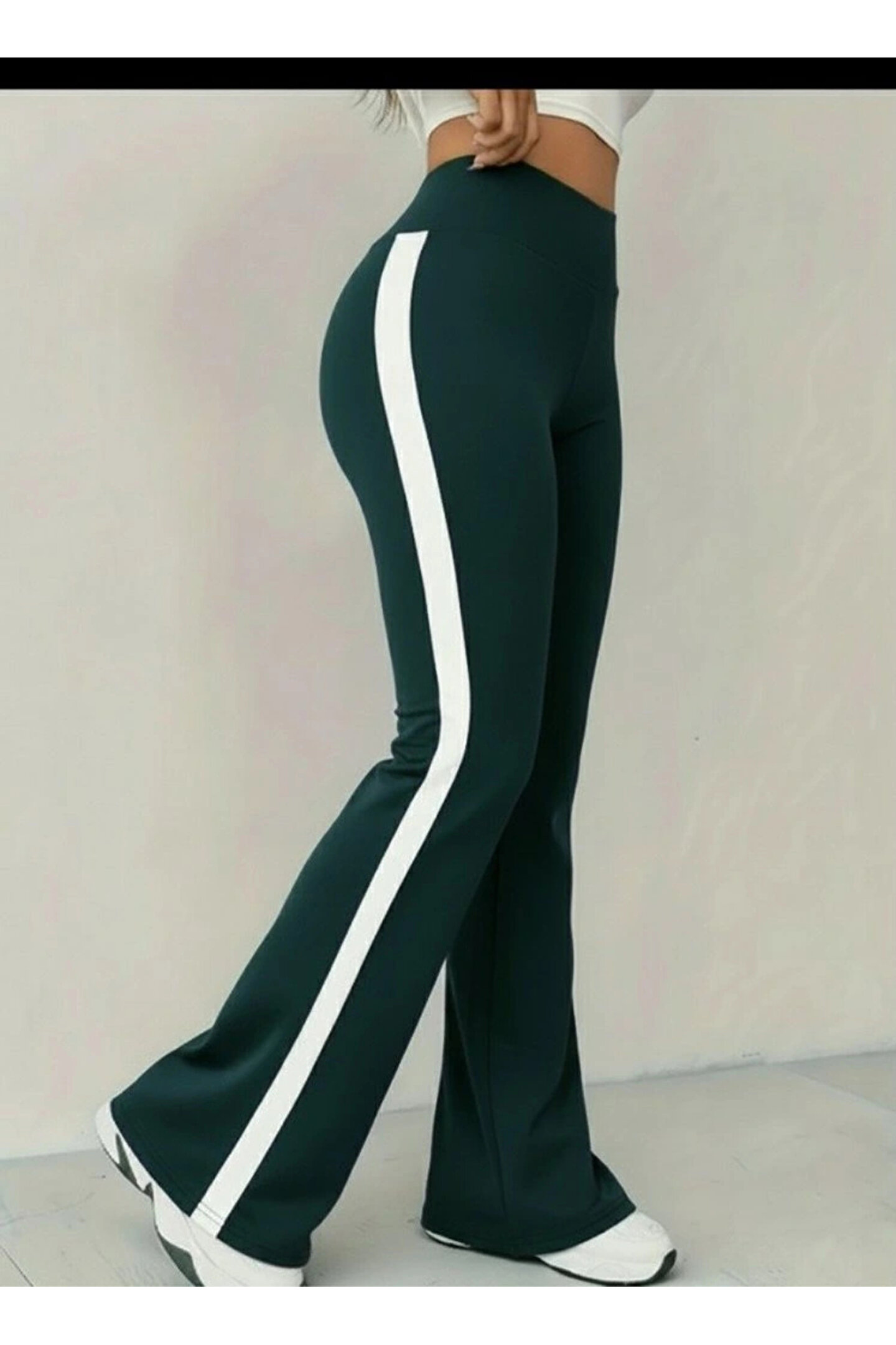 ARONA Kadın Yüksek Bel İspanyol Paçalı Yanlardan şerit Detaylı Dalgıç Tayt Pantolon