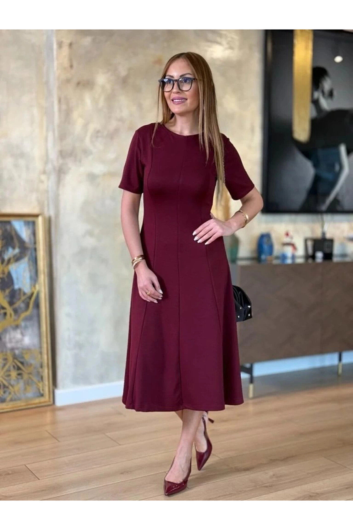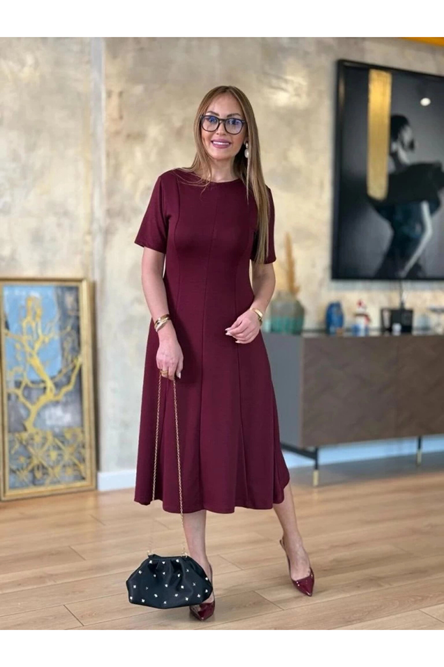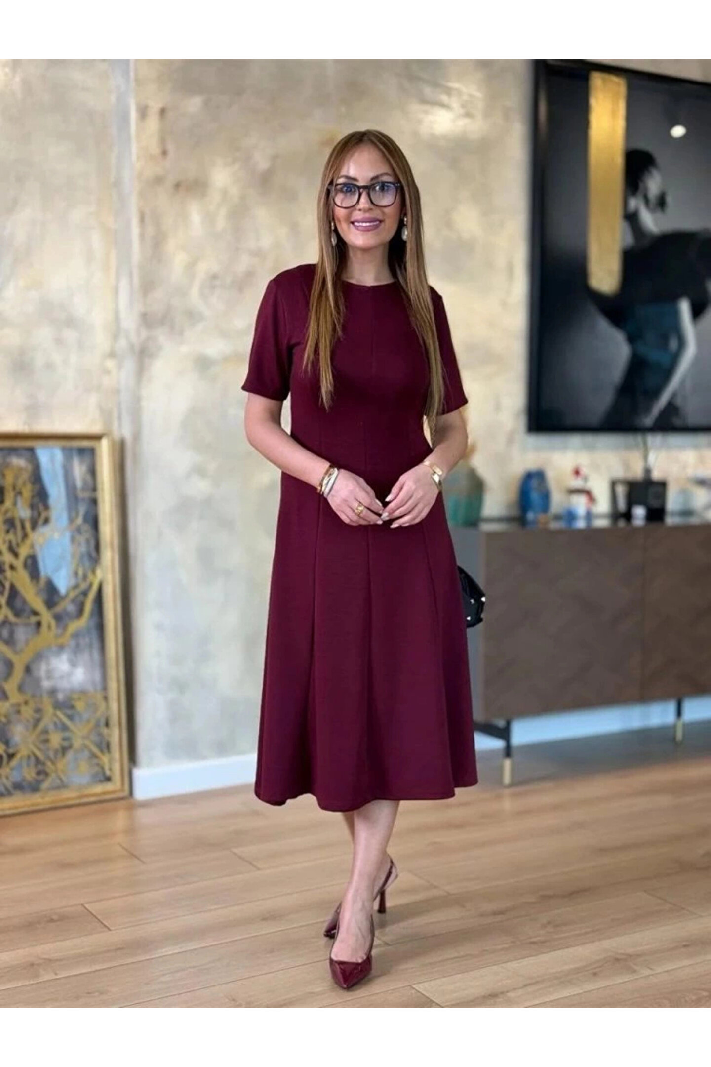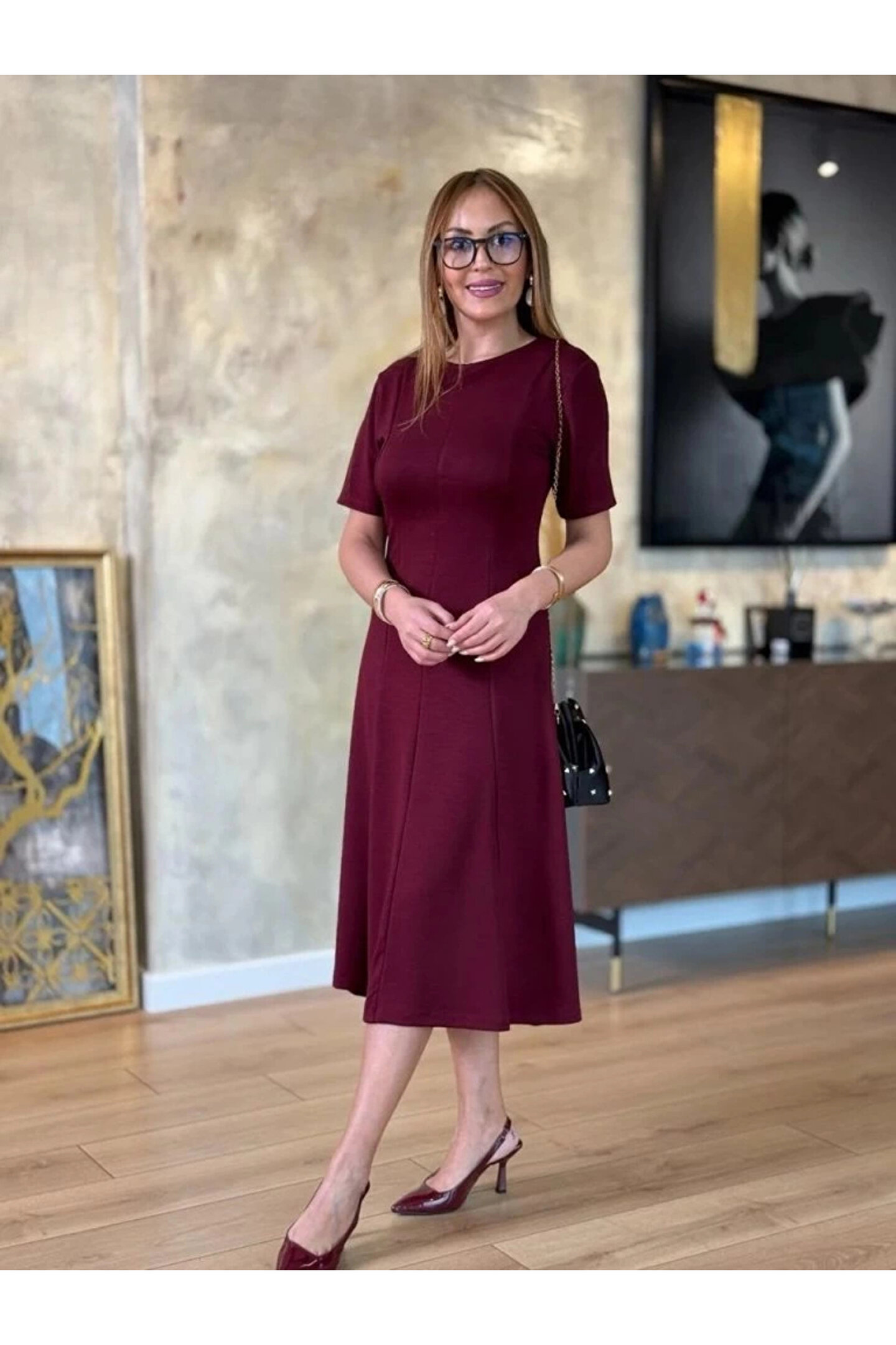 Kadın Kısa Kollu Bisiklet Yaka Midi Viskon Iki Iplik Elbise