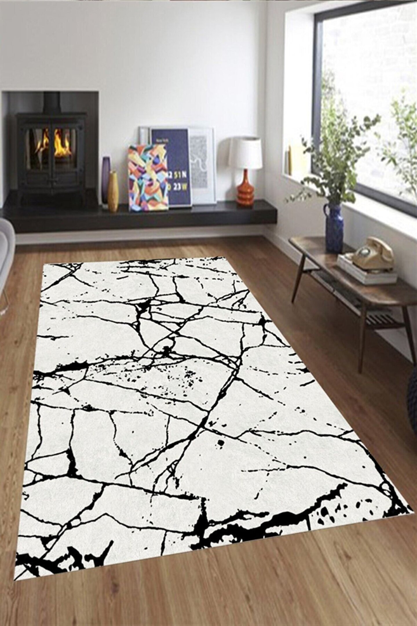 Beyaz Zemin Siyah Mermer Desenli Halı