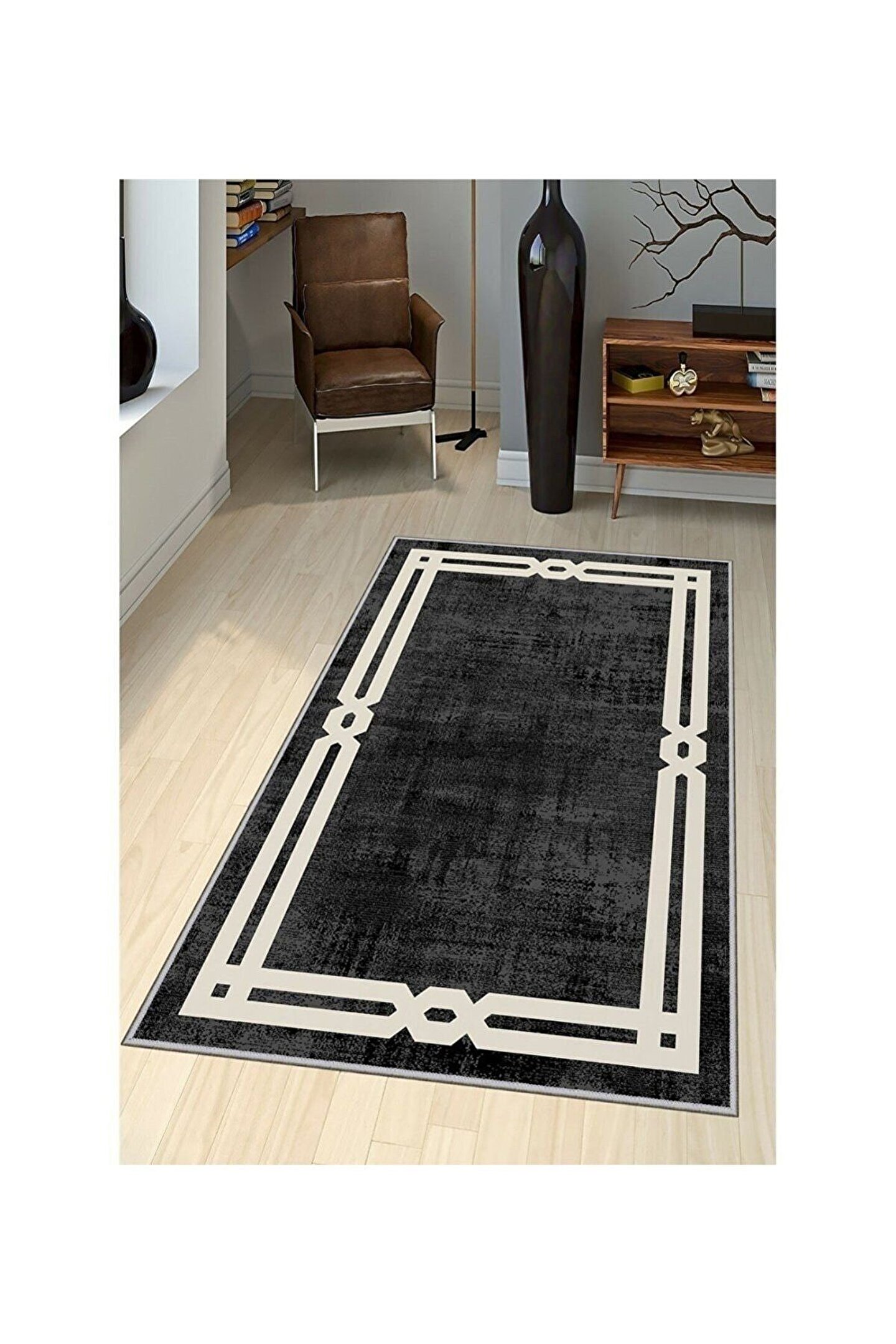 Dijital Baskı Yıkanabilir Kaymaz Taban Beyaz Çerçeveli Yolluk Halı Salon Halısı