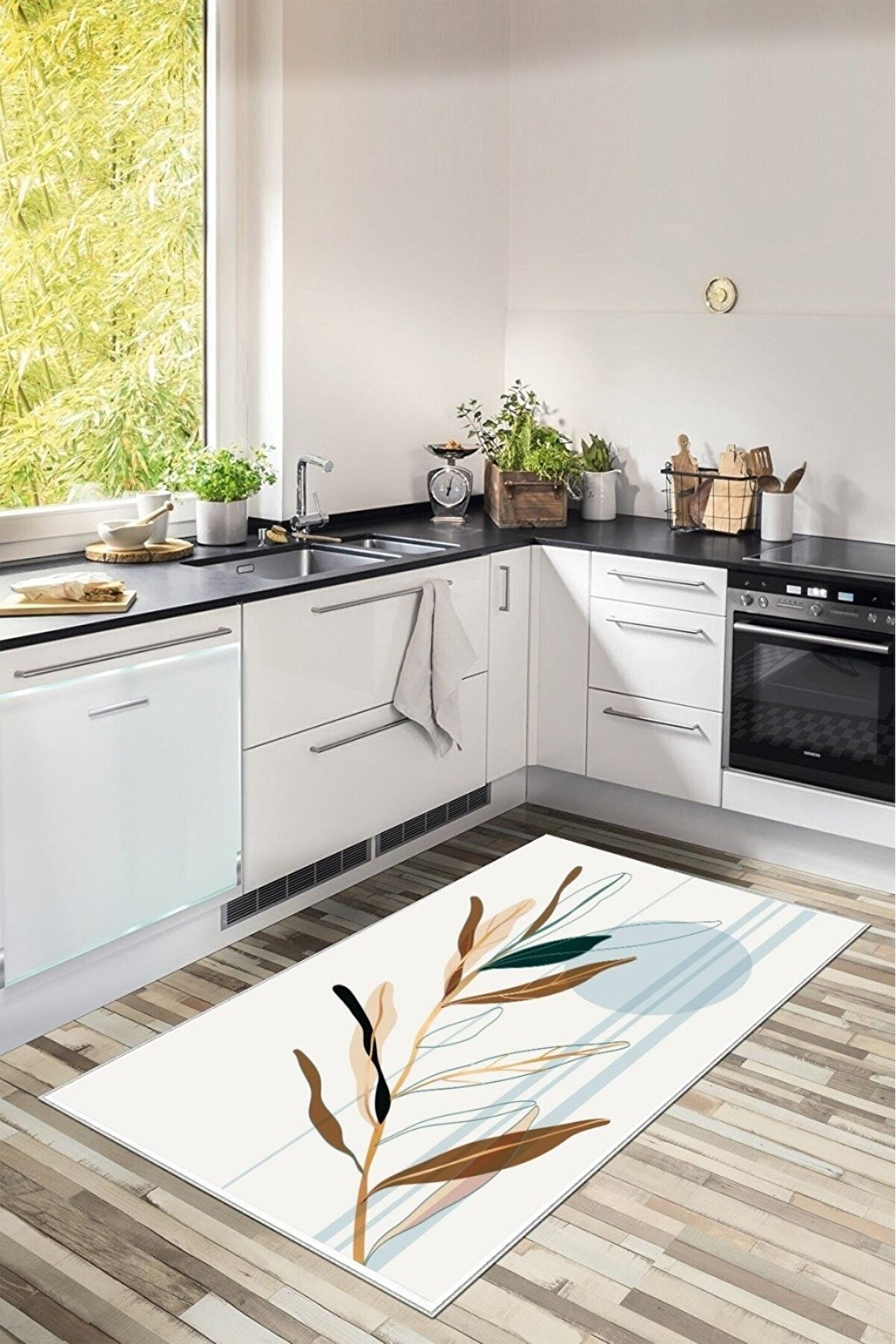 Dijital Baskı Yıkanabilir Kaymaz Taban Beyaz Zemin Sade Renkli Halı Mutfak Halısı
