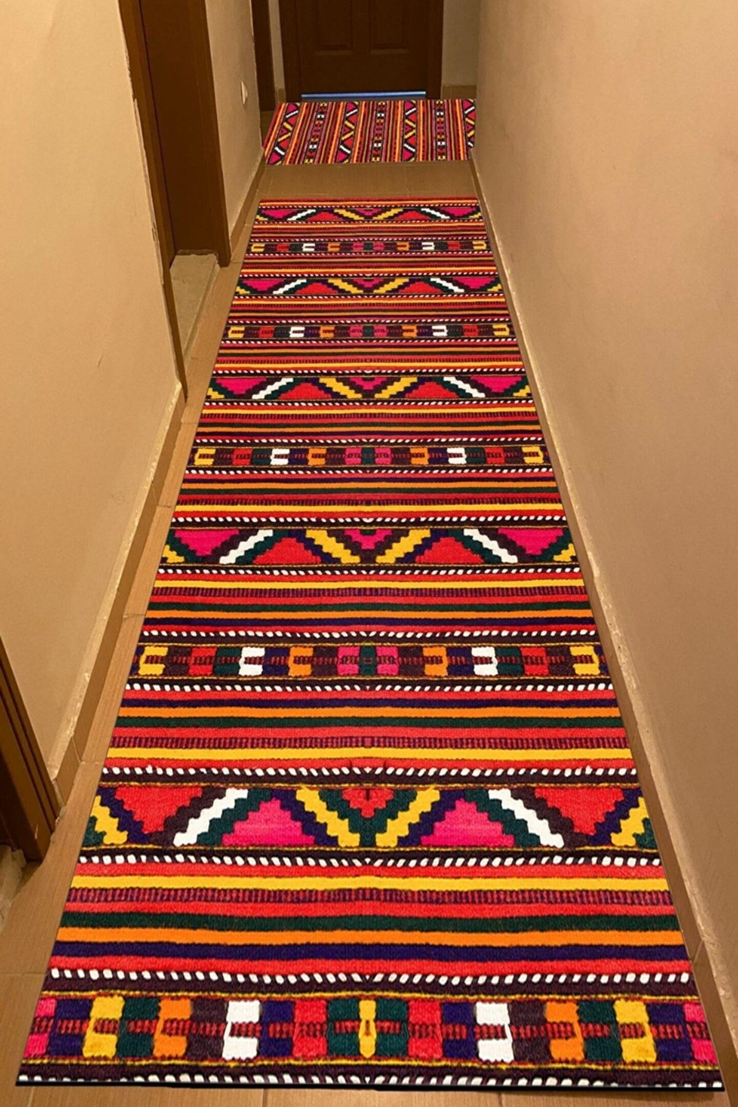 Dijital Baskı Yıkanabilir Kaymaz Taban Çok Renkli Kilim Desenli Yolluk Halı