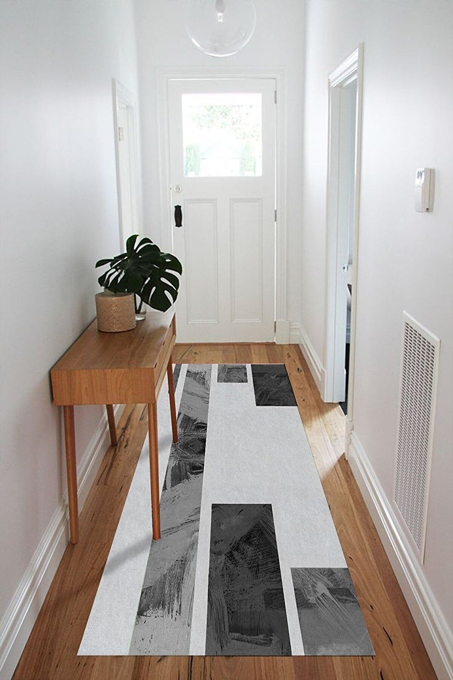 Dijital Baskı Yıkanabilir Kaymaz Taban Gri Sütun Desenli Yolluk Halı