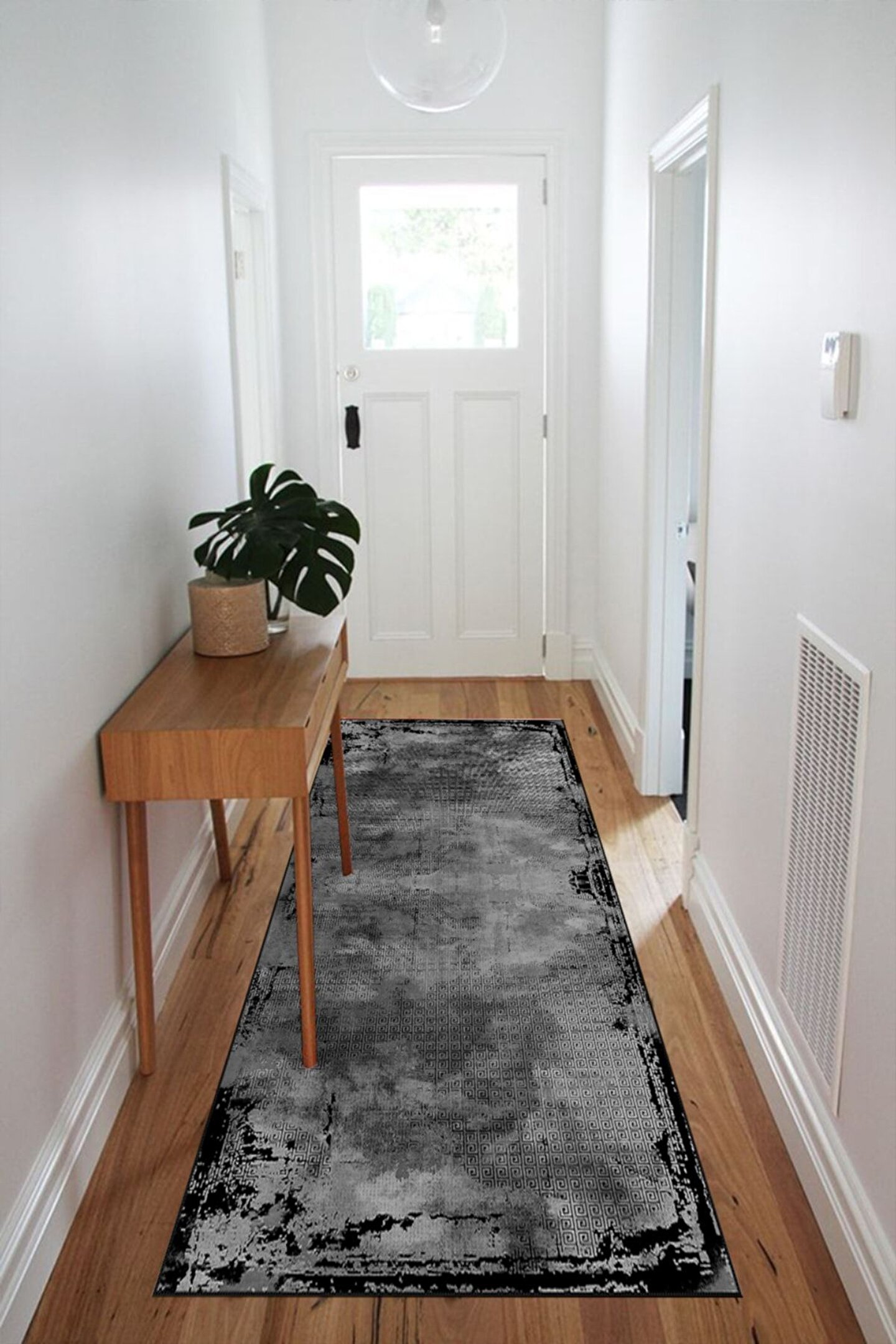 Dijital Baskı Yıkanabilir Kaymaz Taban Gri Tonlar Kilim ve Yolluk Halı