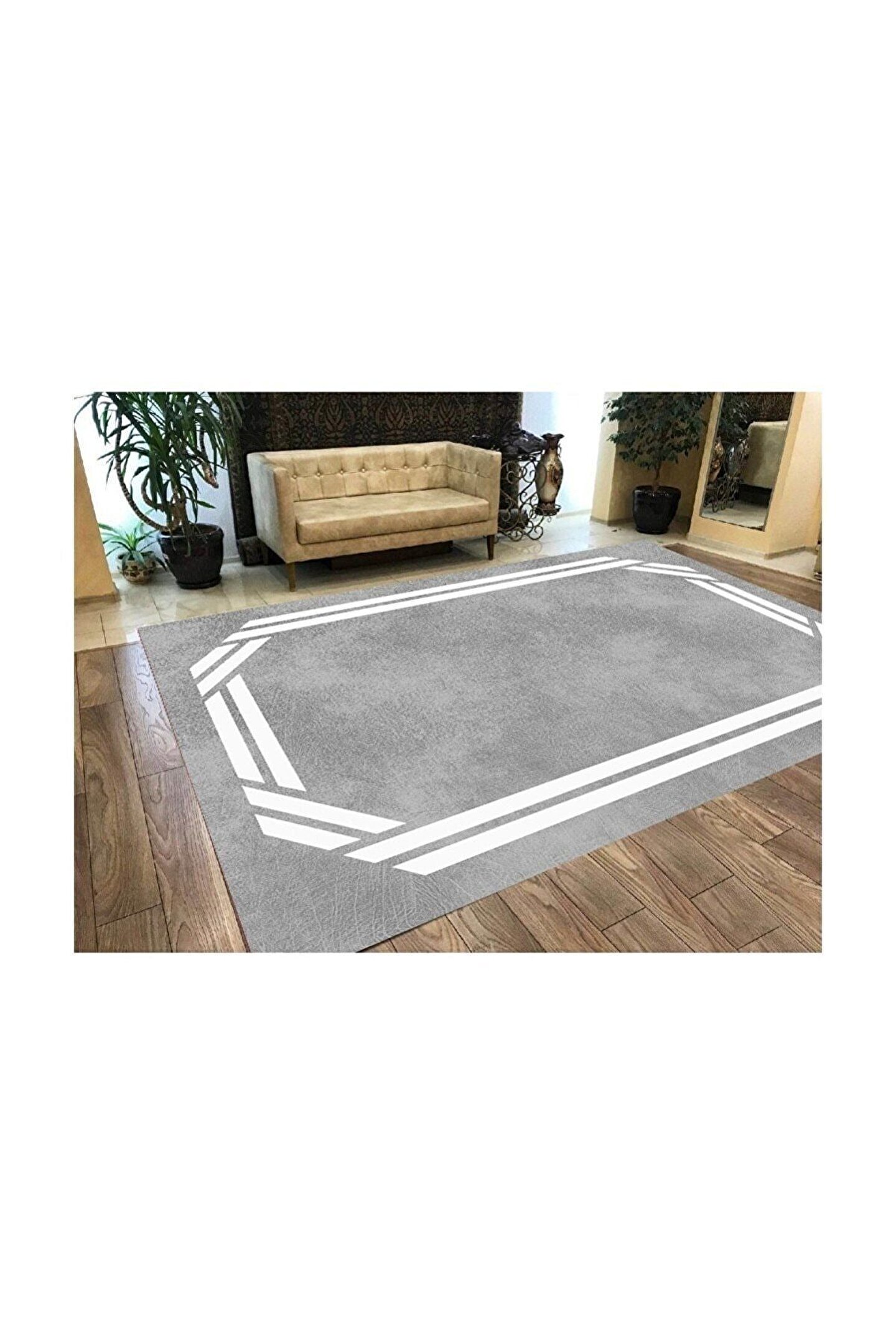 Dijital Baskı Yıkanabilir Kaymaz Taban Gri Zemin Çerçeveli Yolluk Halı Salon Halısı