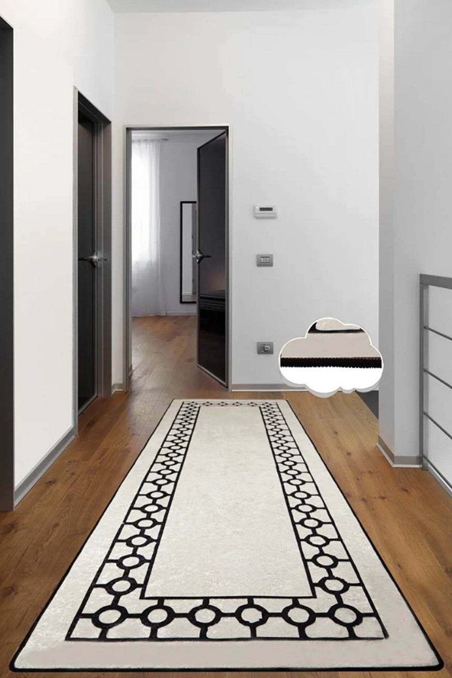 Dijital Baskı Yıkanabilir Kaymaz Taban Krem Zemin Çerçeveli Modern Yolluk Halı