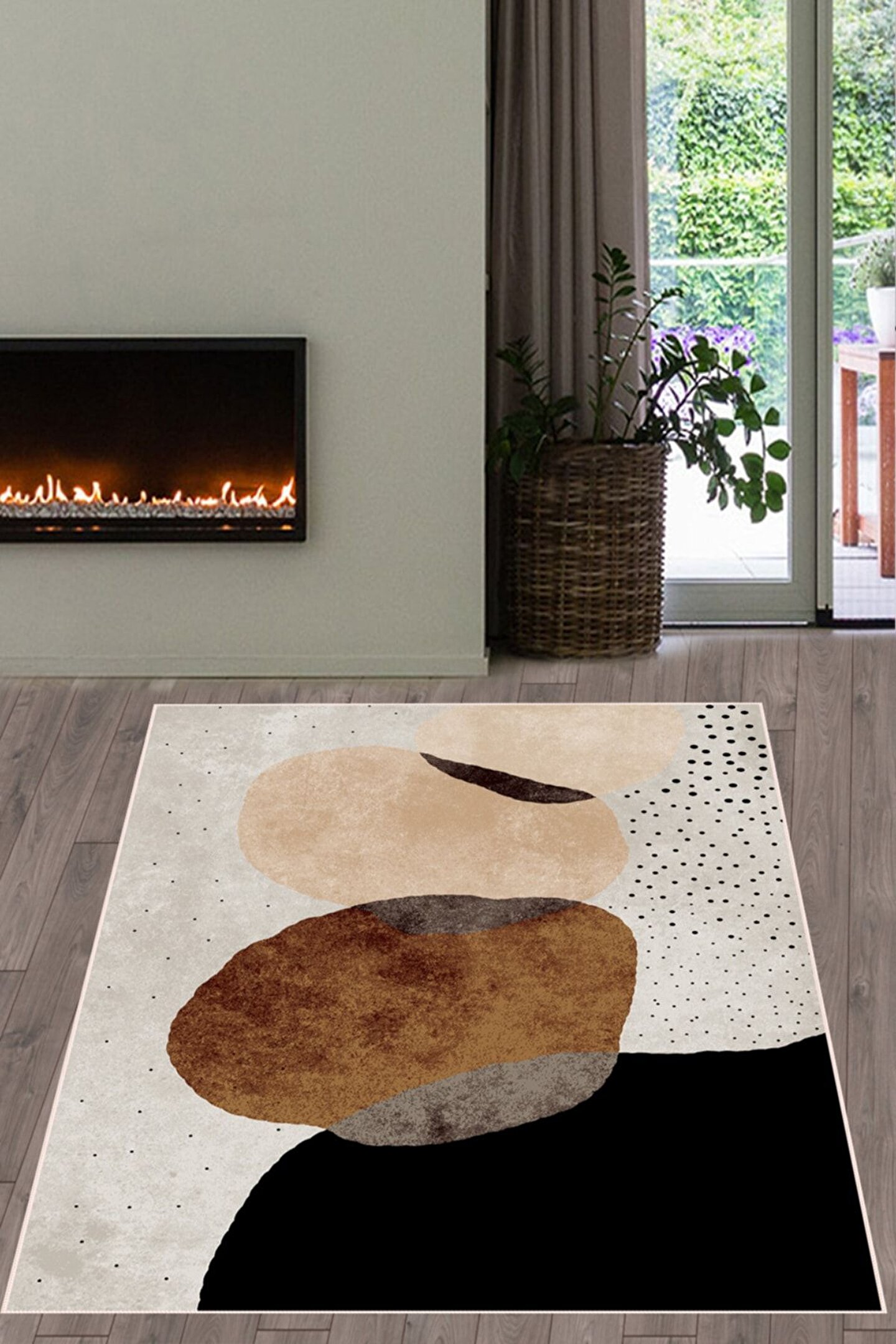 Dijital Baskı Yıkanabilir Kaymaz Taban Renkli Taş Motifli Salon Yolluk Ve Kilim Halı