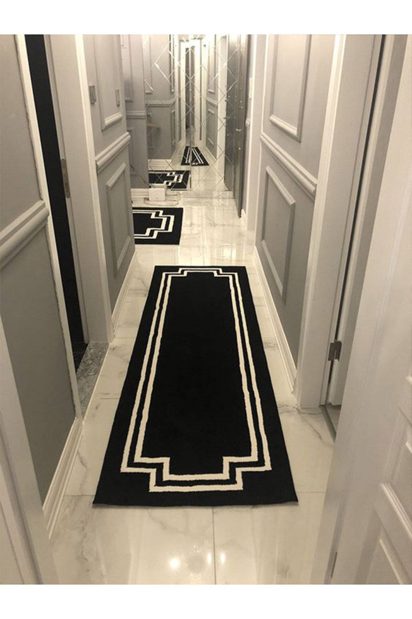 Dijital Baskı Yıkanabilir Kaymaz Taban Siyah Beyaz Modern Yolluk Halı