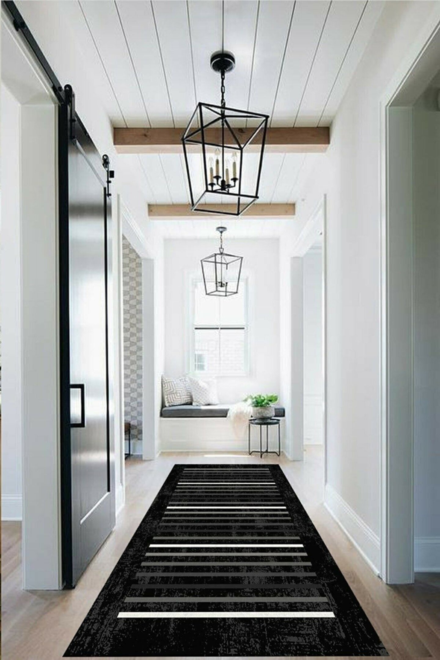 Dijital Baskı Yıkanabilir Kaymaz Taban Siyah Zemin Çizgili Klasik Yolluk Halı
