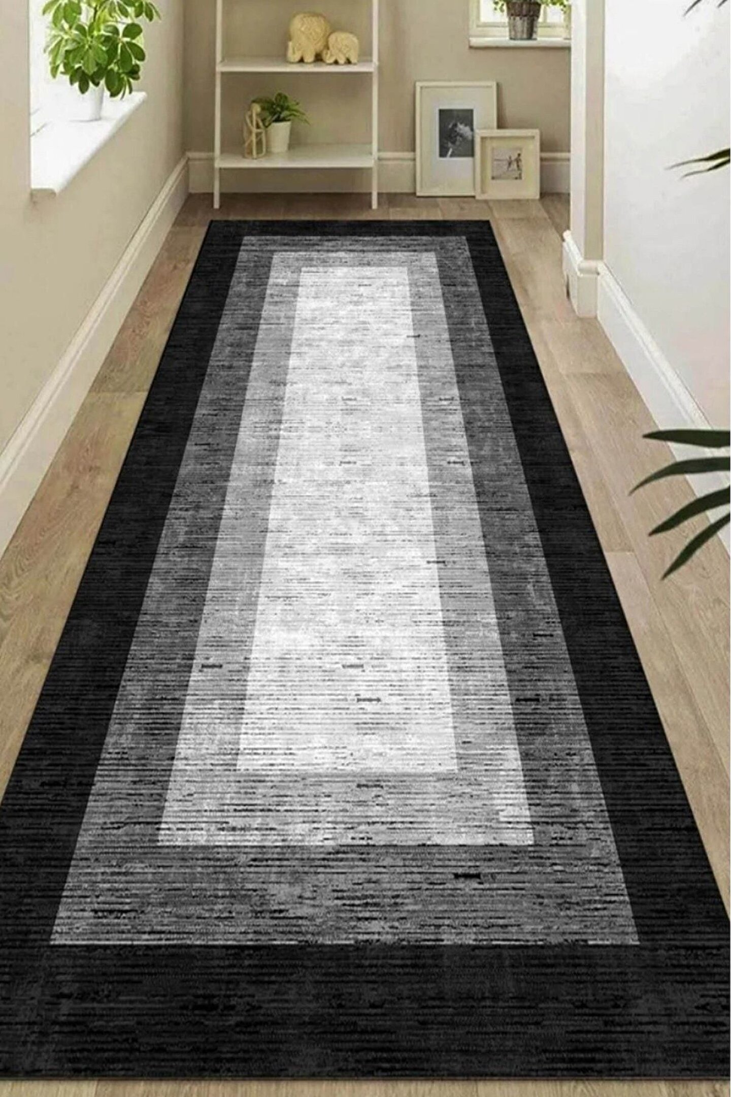 Dijital Baskı Yıkanabilir Kaymaz Taban Siyah&beyaz Gri Sütunlu Yolluk Halı Koridor Halısı