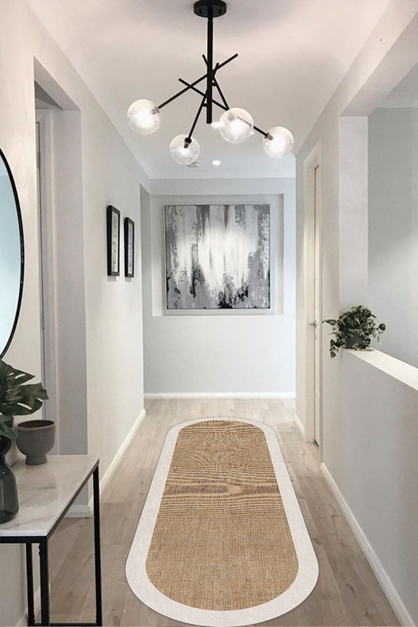 Dijital Baskı Yıkanabilir Kaymaz Taban Sütlü Kahve Zeminli Oval Yolluk Halı