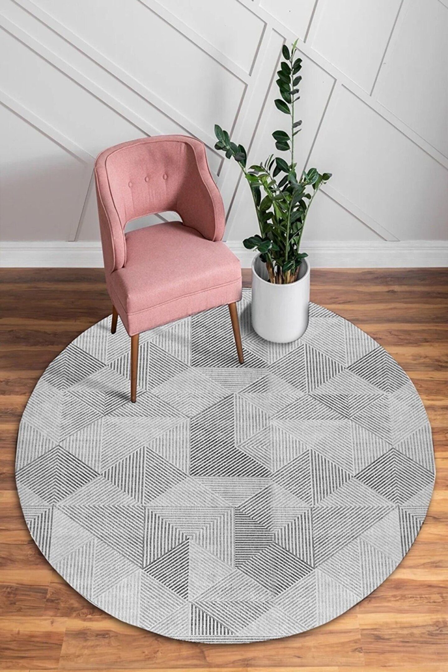 Gri Renkli Yuvarlak Geometrik Desenli Luxury Halı