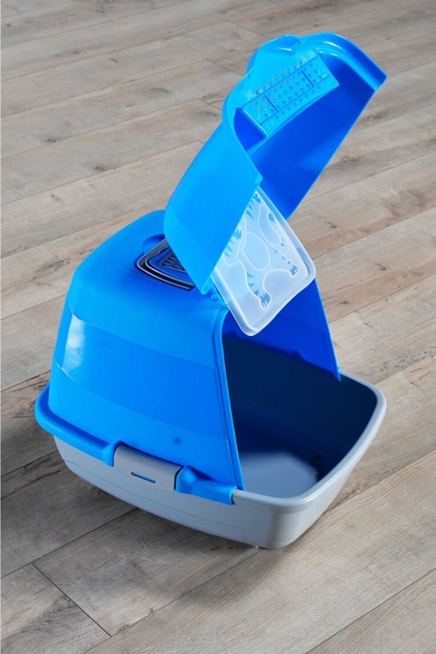 Kapalı tasarımı sayesinde, kedinizin dışkılarını ve idrarını toplayarak evinizin temiz kalmasını sağlar; Kedi figürleriyle süslenmiş mavi renk seçeneği, hem şık hem de eğlenceli bir görünüm sunar; Kolay temizlenebilir yapısı ile pratik kullanım imkanı tanır; böylece hijyenik bir ortamın korunmasına yardımcı olur;