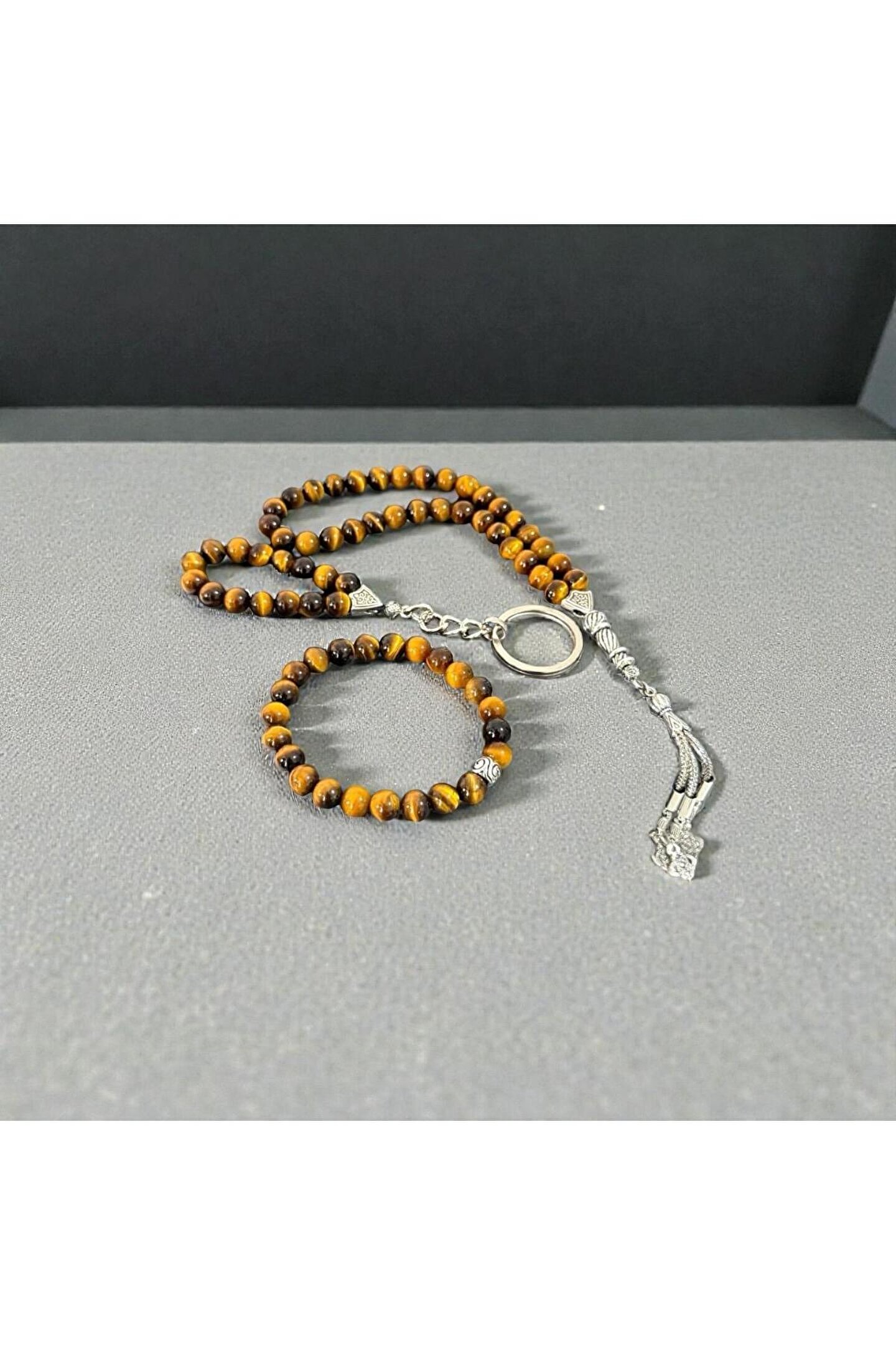 - Doğal taşlardan üretilmiş, her biri benzersiz desenlere sahip kaplan gözü tesbih, bileklik ve anahtarlık seti.; - Unisex tasarımıyla hem erkekler hem de kadınlar için uygun, şık ve anlamlı bir aksesuar.; - Türkiye'de üretilmiş olup, yerel işçiliğin ve doğal kaynakların kalitesini yansıtır.; - Yetişkinler için ideal bir hediye seçeneği, hem günlük kullanımda hem de özel günlerde tercih edilebilir.;