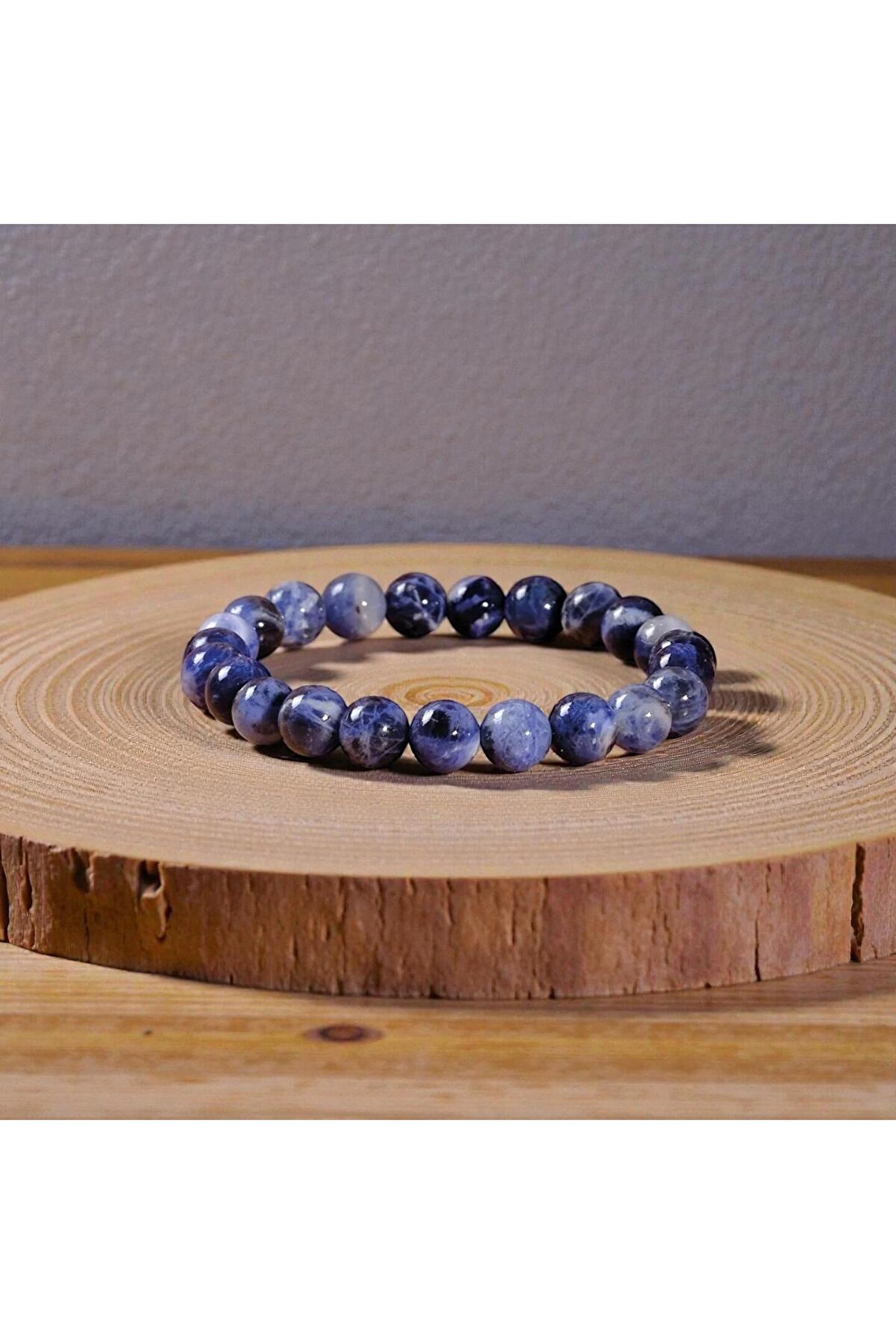 - Doğal sodalit taşı kullanılarak üretilmiş, her bir bileklik benzersiz bir görünüme sahiptir.; - 8 mm çapındaki taşlar, hem şık hem de rahat bir kullanım sunar.; - Unisex tasarımıyla herkesin bileğine uyum sağlar ve farklı tarzlara kolayca adapte olur.; - Türkiye'de üretilmiş olması, yerel işçiliğin ve doğal kaynakların değerini yansıtır.;