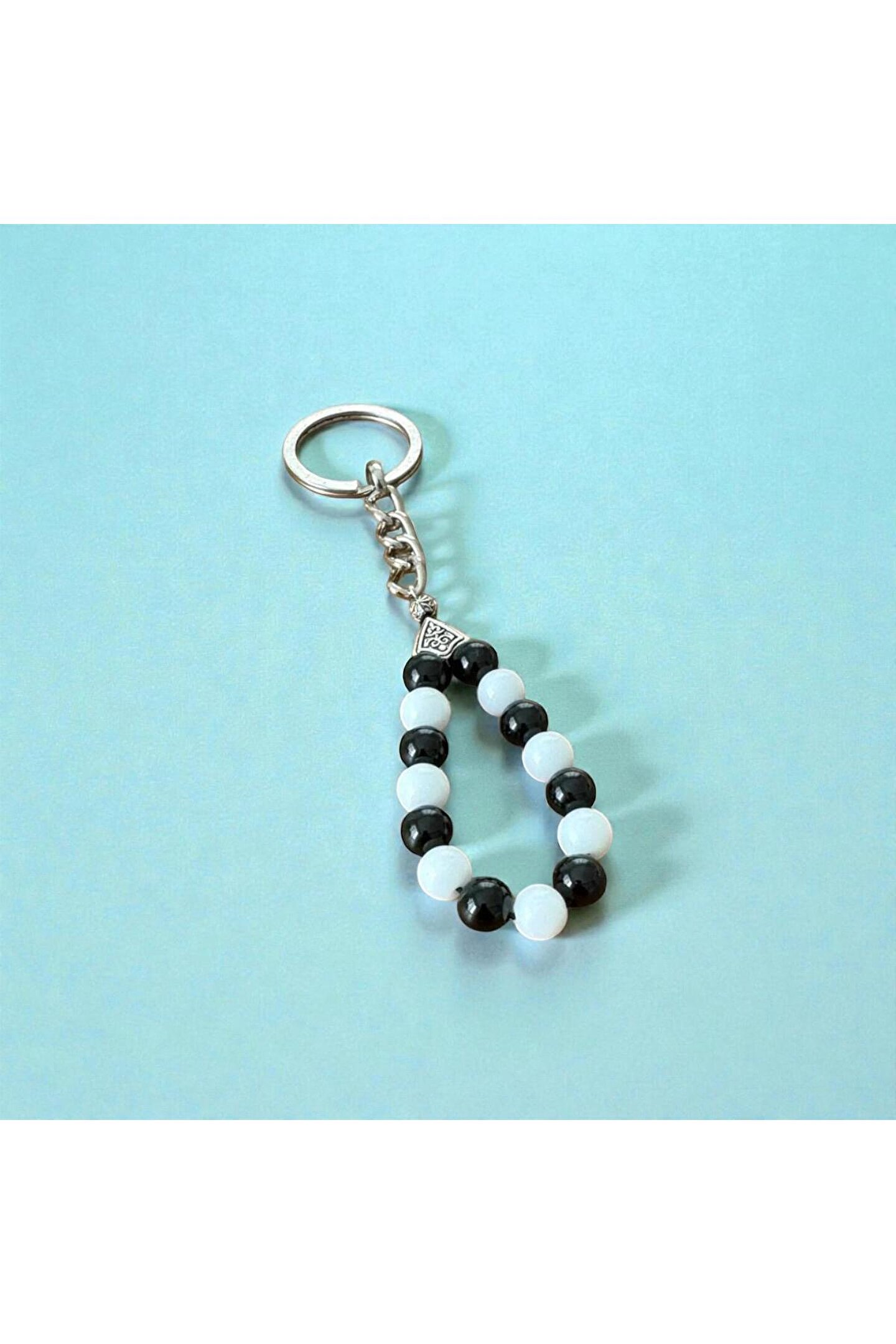 - Doğa temalı tasarımıyla dikkat çeken siyah-beyaz oniks ve ceyt doğal taşından üretilmiştir.; - Her bir anahtarlığın benzersizliği, doğal taşların kendine özgü desenleriyle ön plana çıkar.; - Tek parça olarak sunulan bu anahtarlık, hem şıklığı hem de dayanıklılığı bir arada sunar.; - Doğal taş kullanımı sayesinde uzun ömürlü ve çevre dostu bir aksesuar seçeneği sunar.;