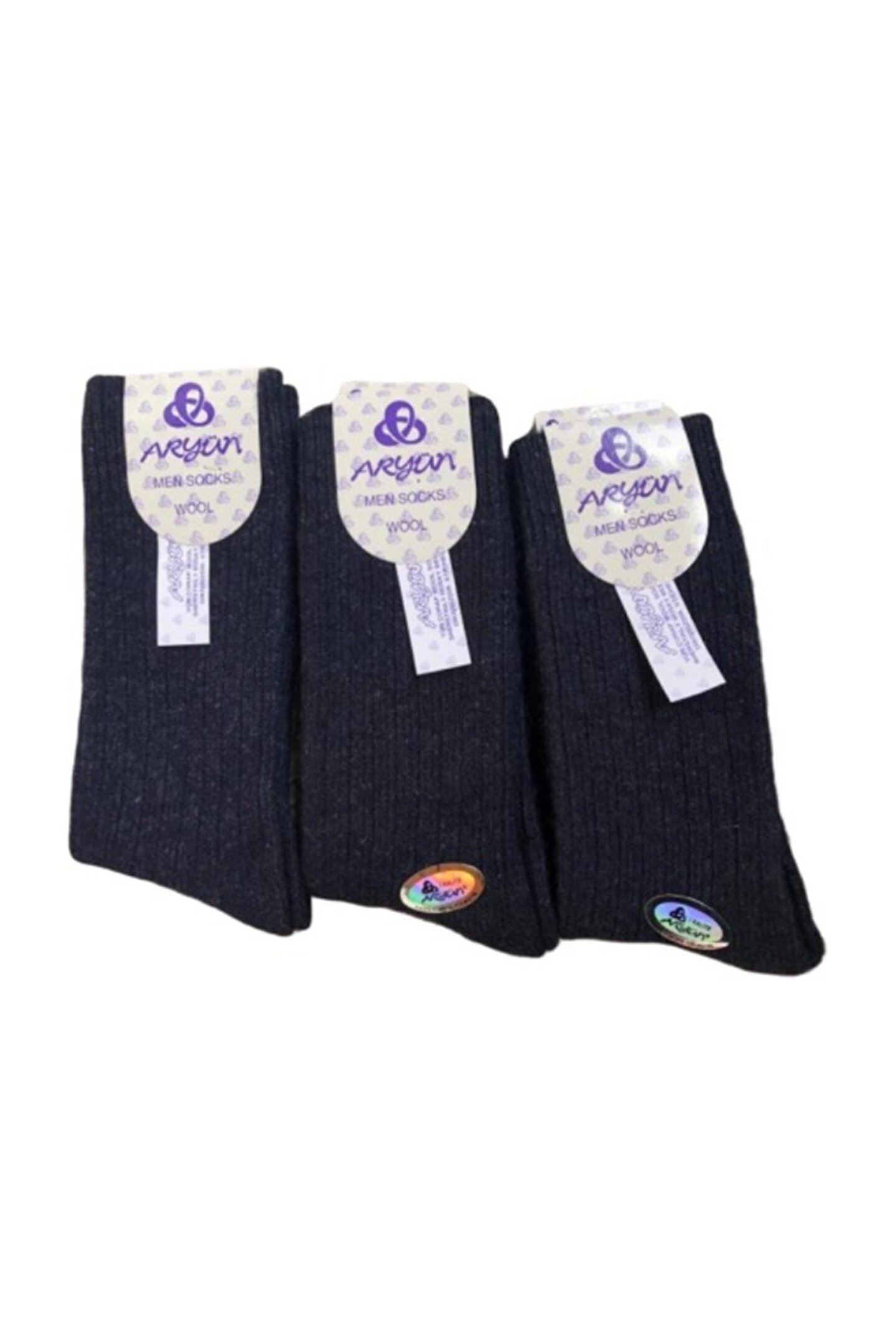 Ary Yün Çorap Doğal Yün Dikişsiz Kışlık Yün Çorap Aryün 3 Çift 40--44