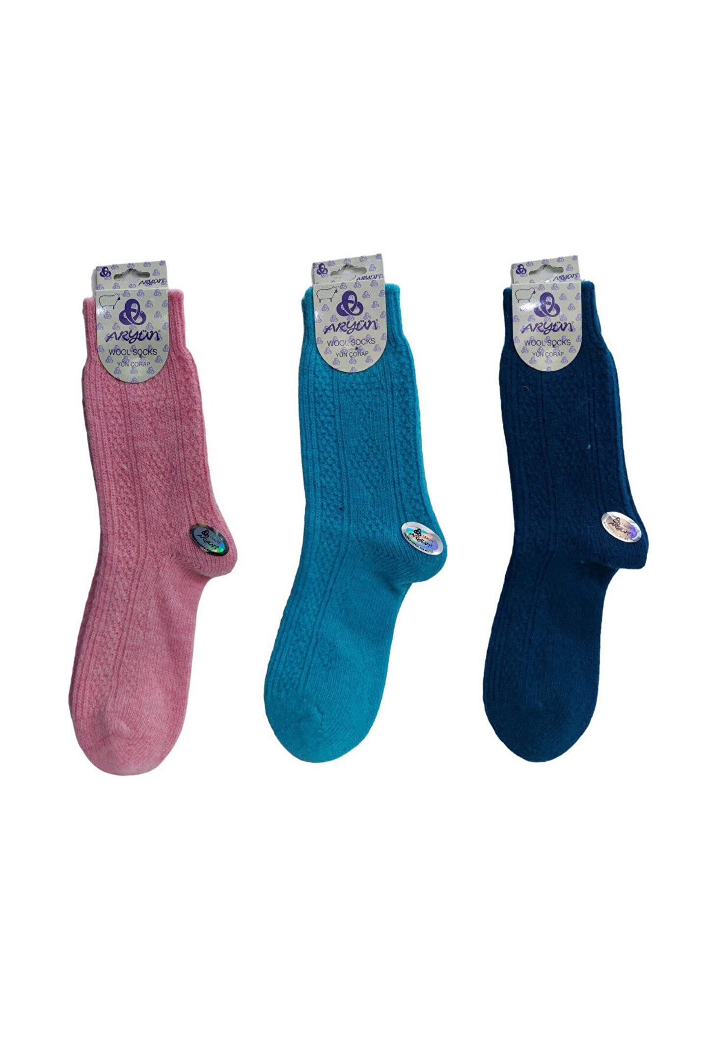 aryün 3LÜ SET DİKİŞSİZ RENKLİ YÜN SOKET KADIN ÇORAP